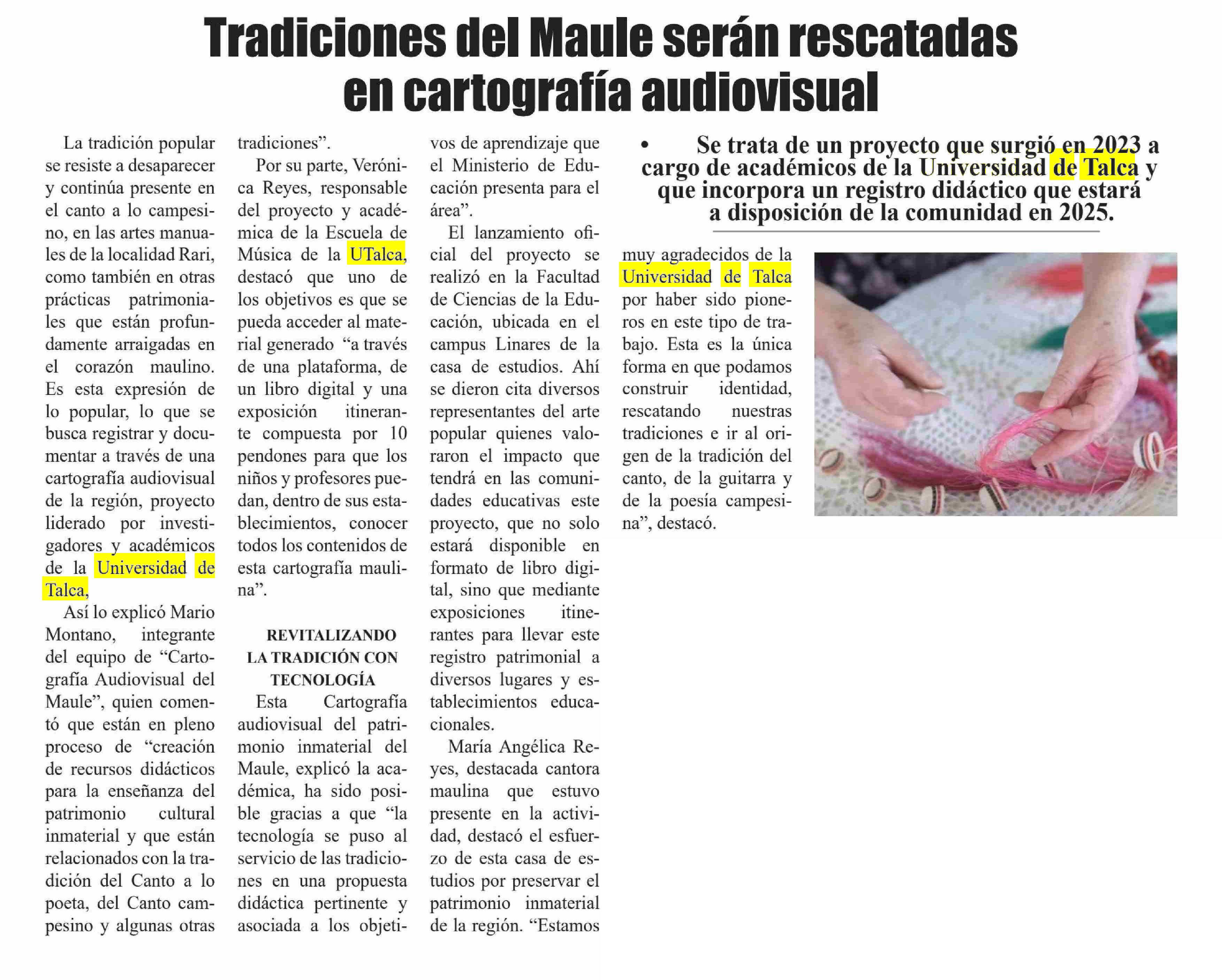 Tradiciones del Maule serán rescatadas en cartografía audiovisual. Se refiere Verónica Reyes, académica de la Escuela de Música.