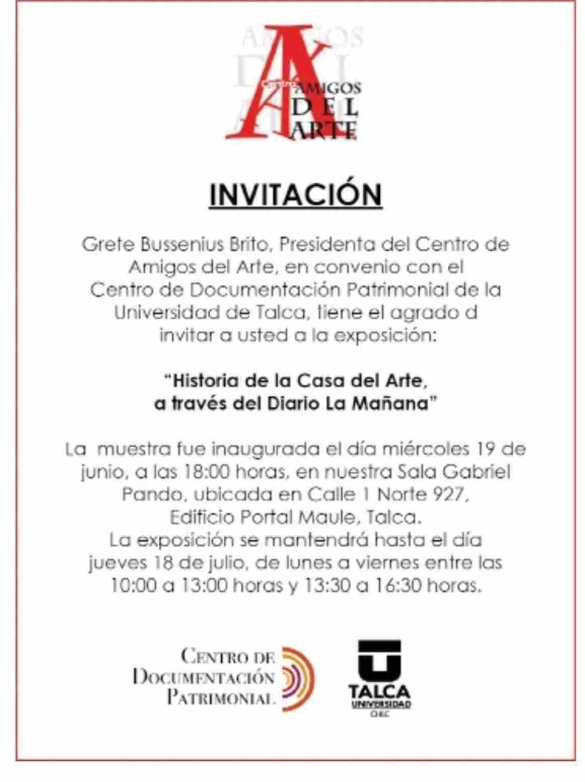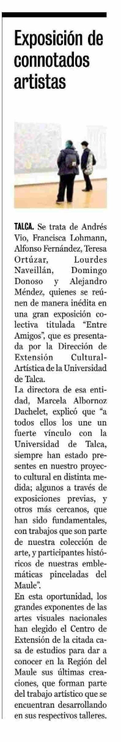 Exposición de connotados artistas. Se refiere Marcela Albornoz Dachelet, directora de Extensión Cultural-Artística.