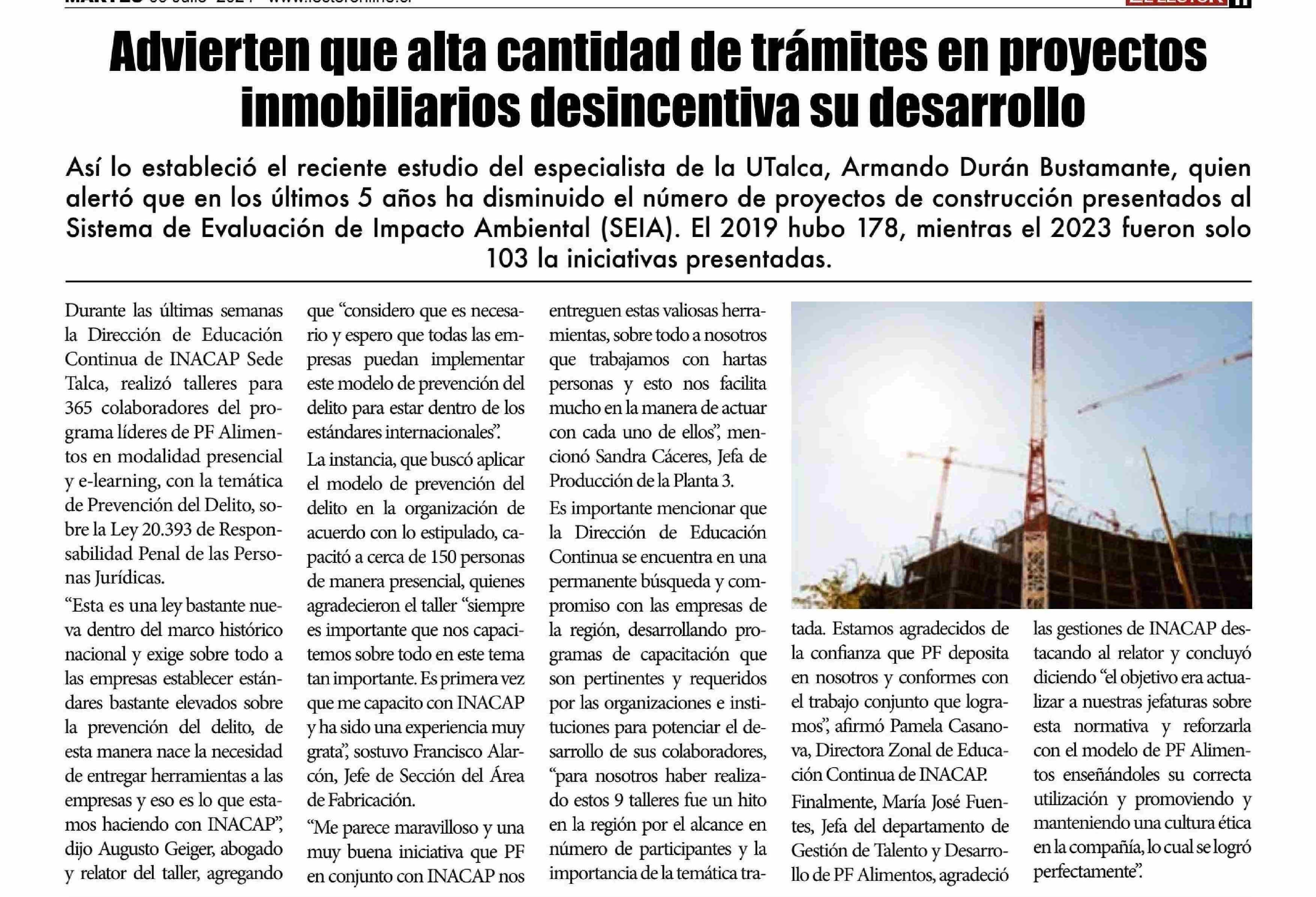 Alta cantidad de trámites en proyectos inmobiliarios desincentiva su desarrollo. Se refiere Armando Durán Bustamante, académico de la Facultad de Ingeniería.