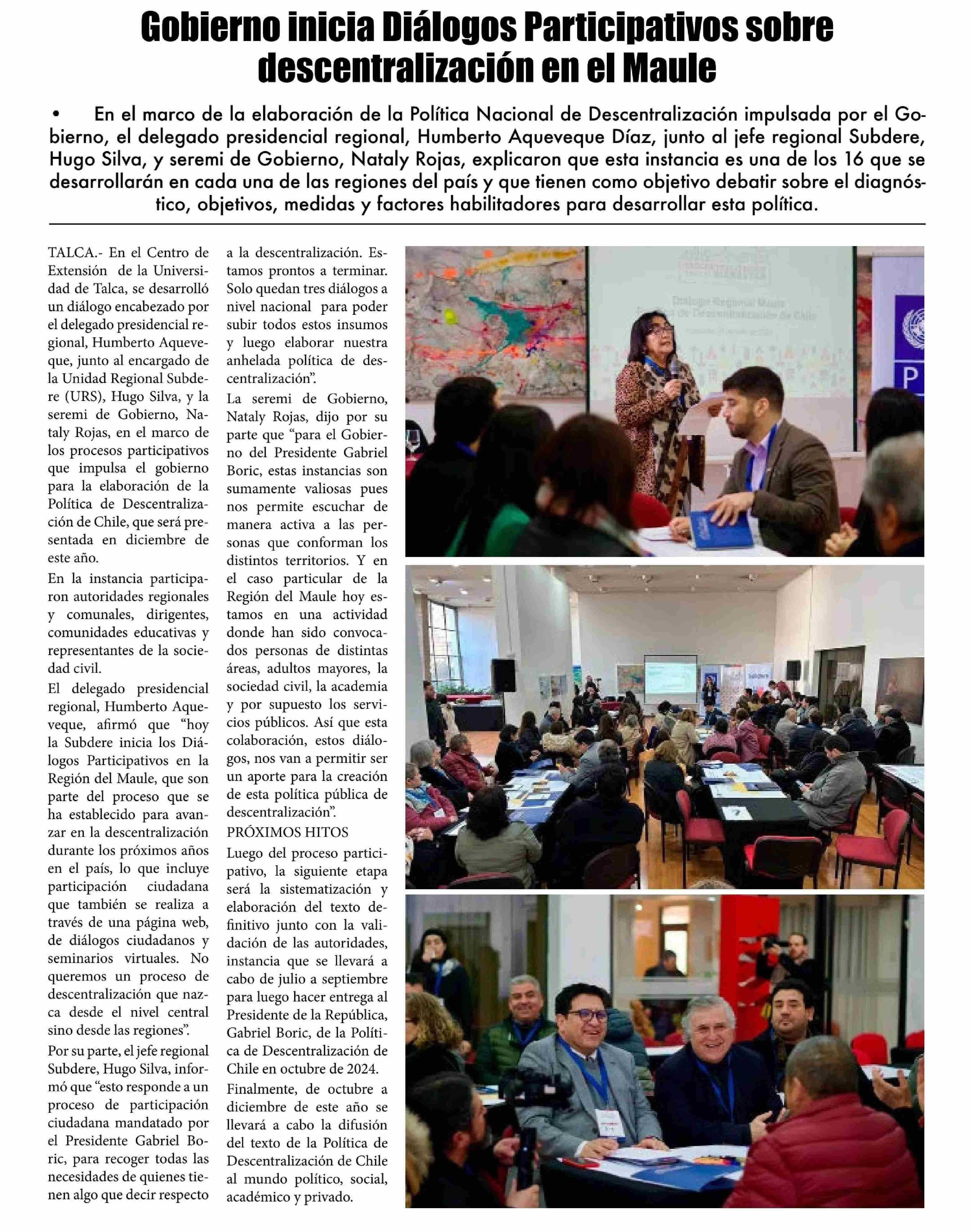 Gobierno inicia Diálogos Participativos sobre descentralización en el Maule. Se menciona la Universidad de Talca.