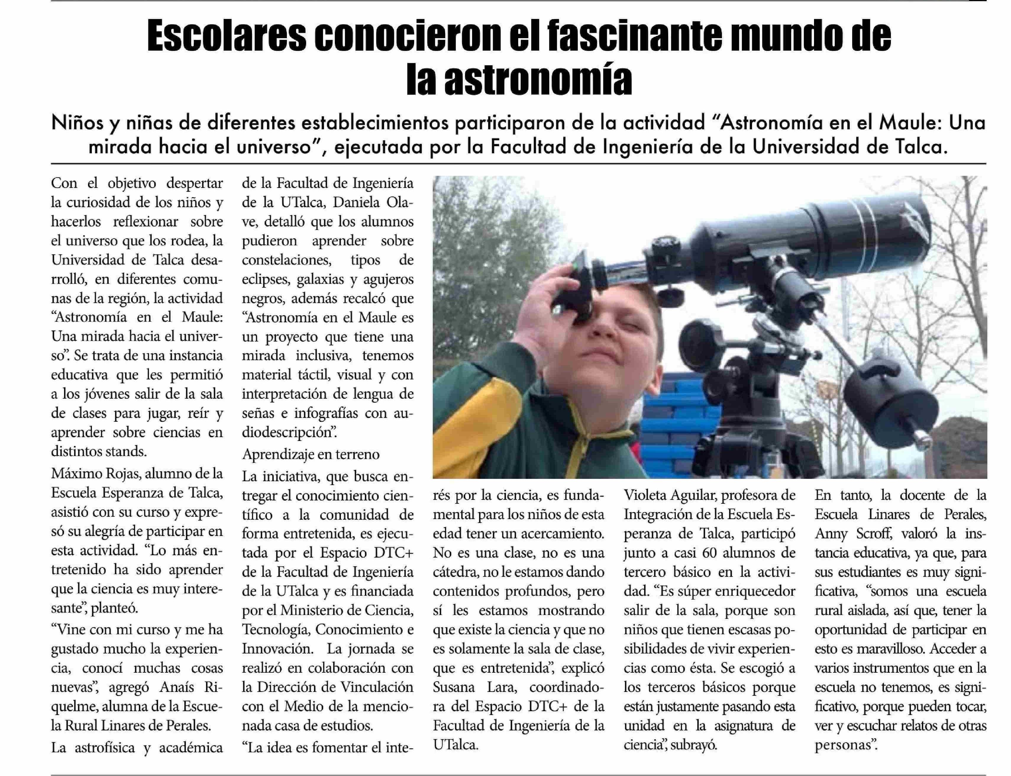 Escolares conocieron el fascinante mundo de la astronomía. Se refiere Daniela Olave, académica de la Facultad de Ingeniería y Susana Lara, coordinadora del espacio DTC+.