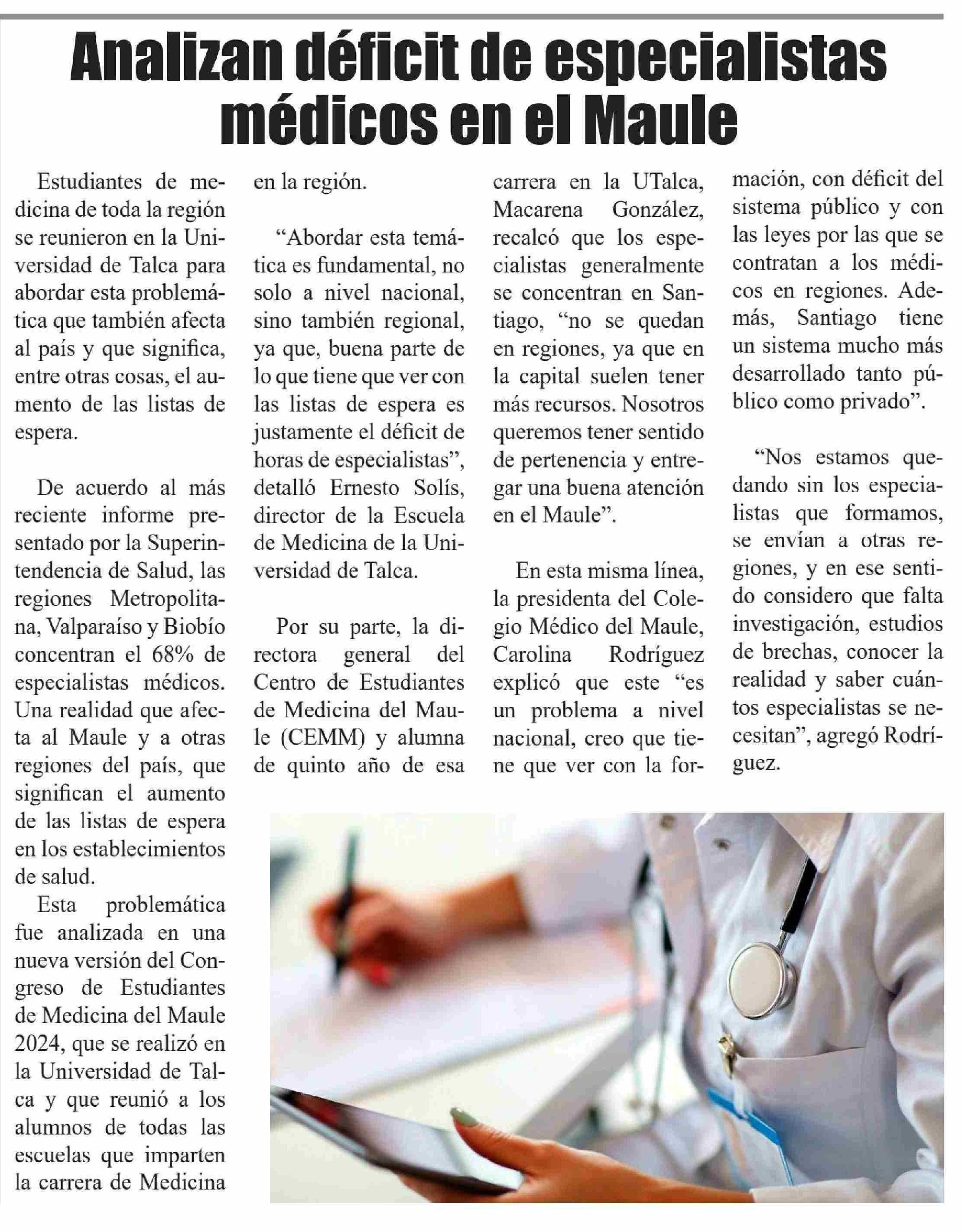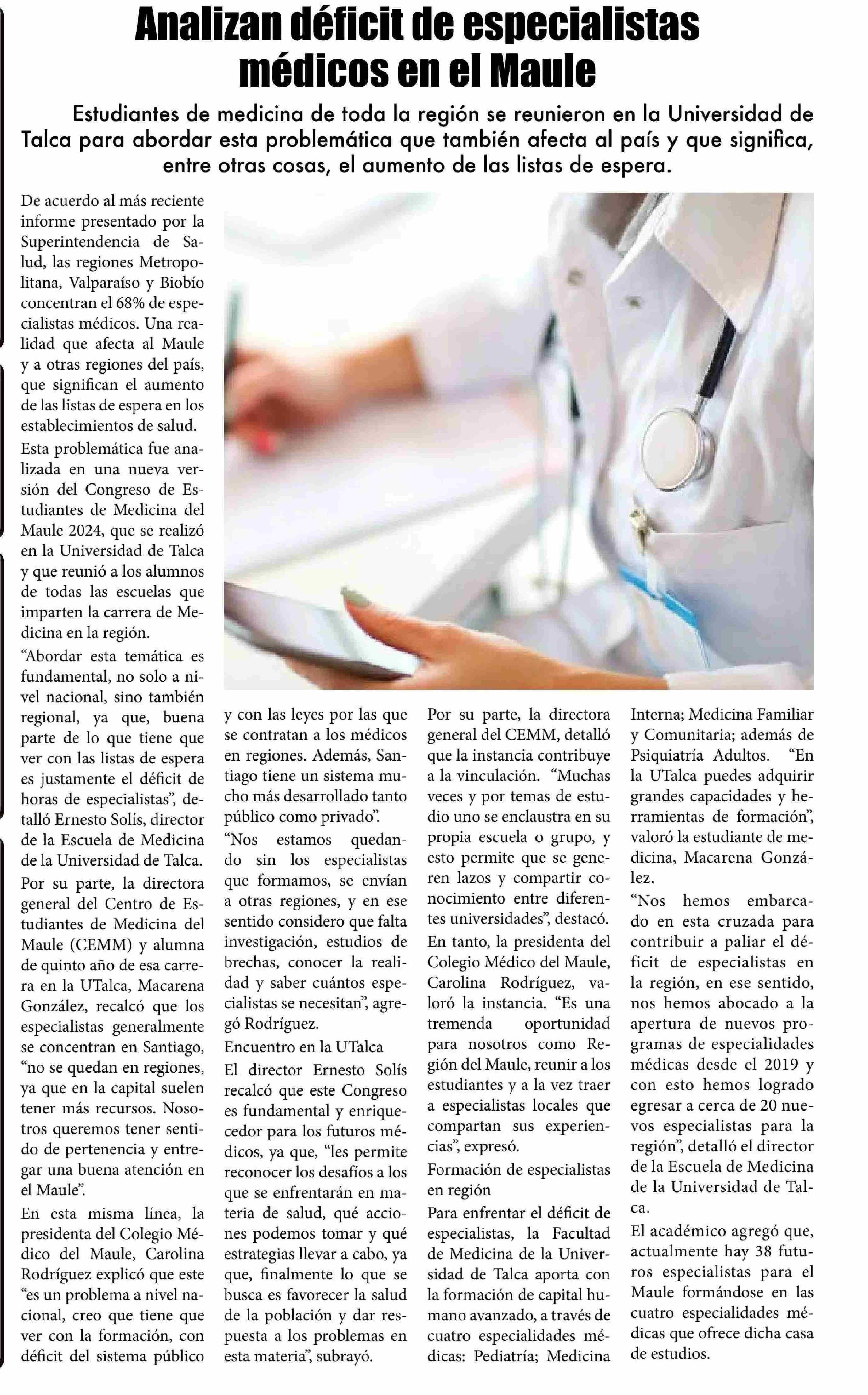 Analizan déficit de especialistas médicos en el Maule. Se refiere Ernesto Solís, director Escuela de Medicina.