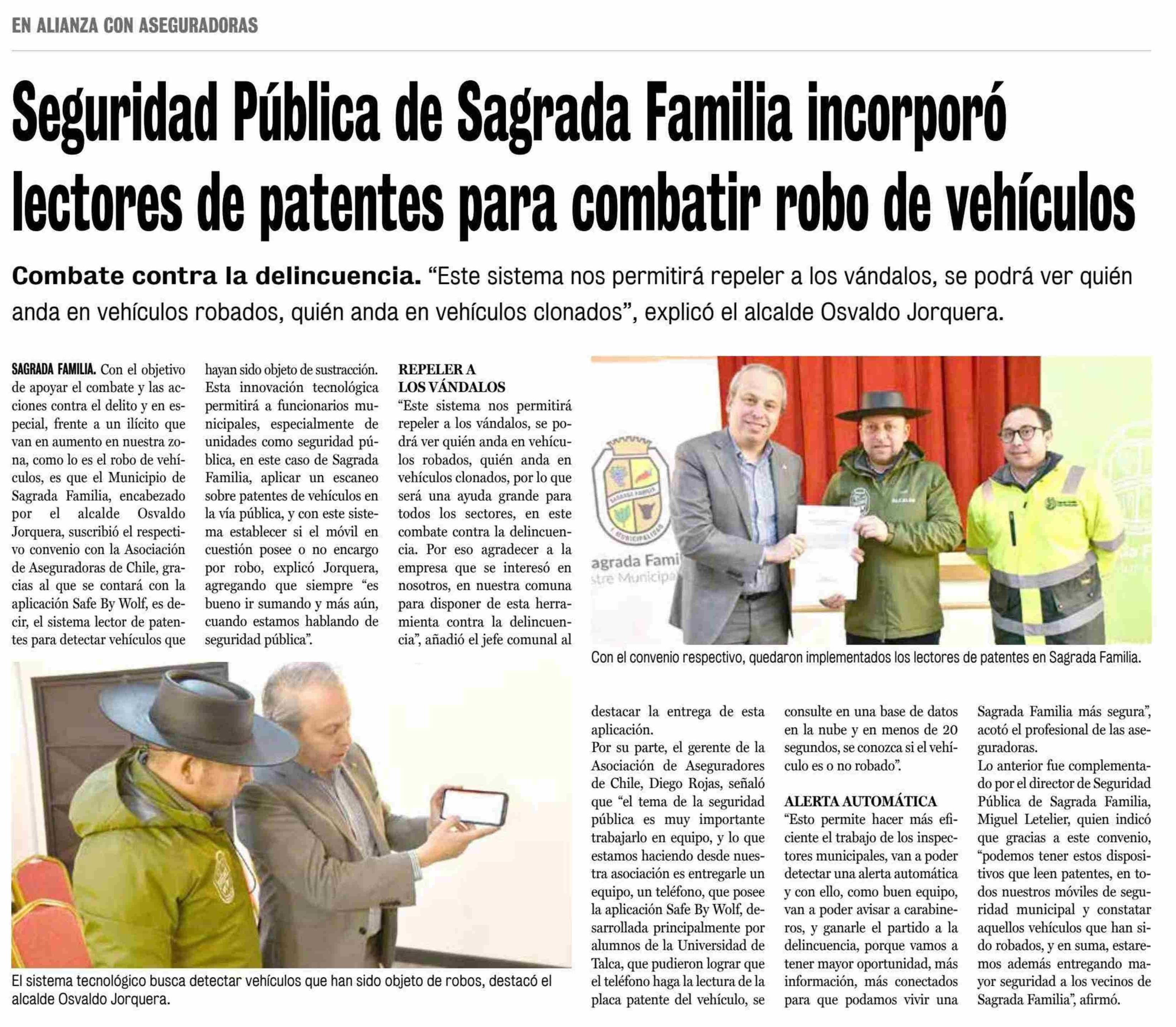 Seguridad Pública de Sagrada Familia incorporó lectores de patentes para combatir robo de vehículos. Se menciona la Universidad de Talca.
