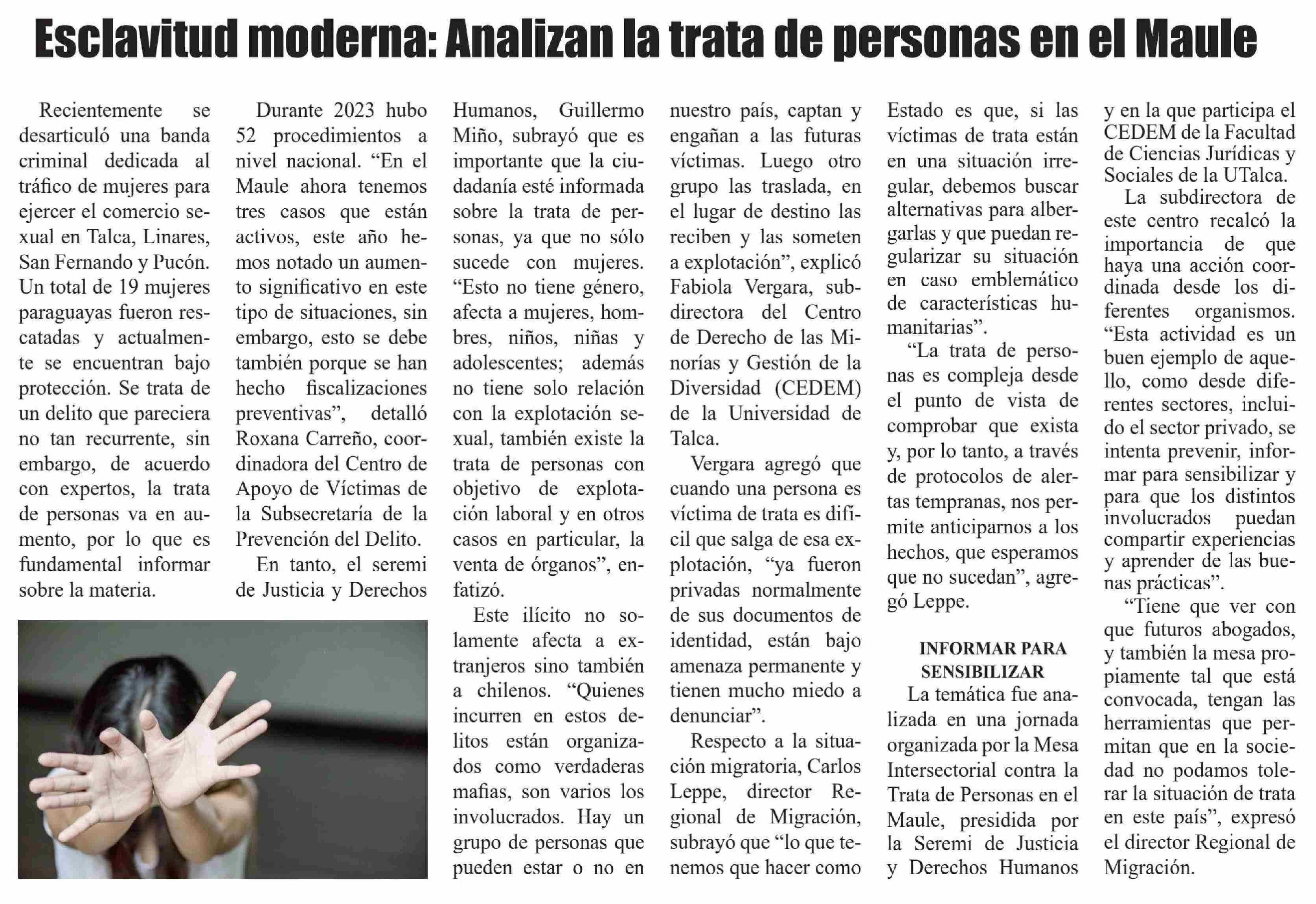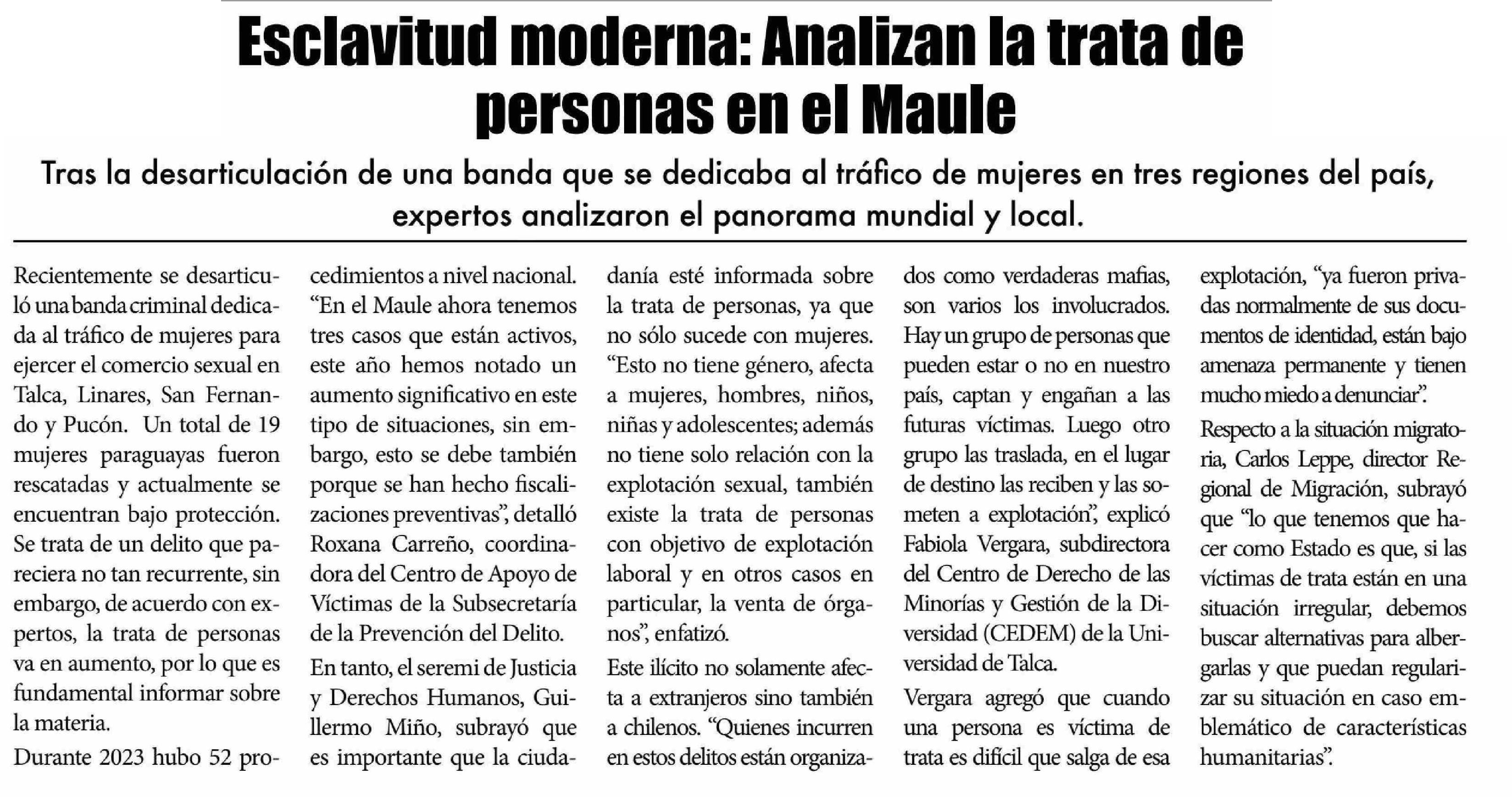 Preocupación en la región del Maule: desarticulación banda dedicada a la trata de personas en Linares. Se refiere Fabiola Vergara, académica de la Facultad de Ciencias Jurídicas y Sociales.
