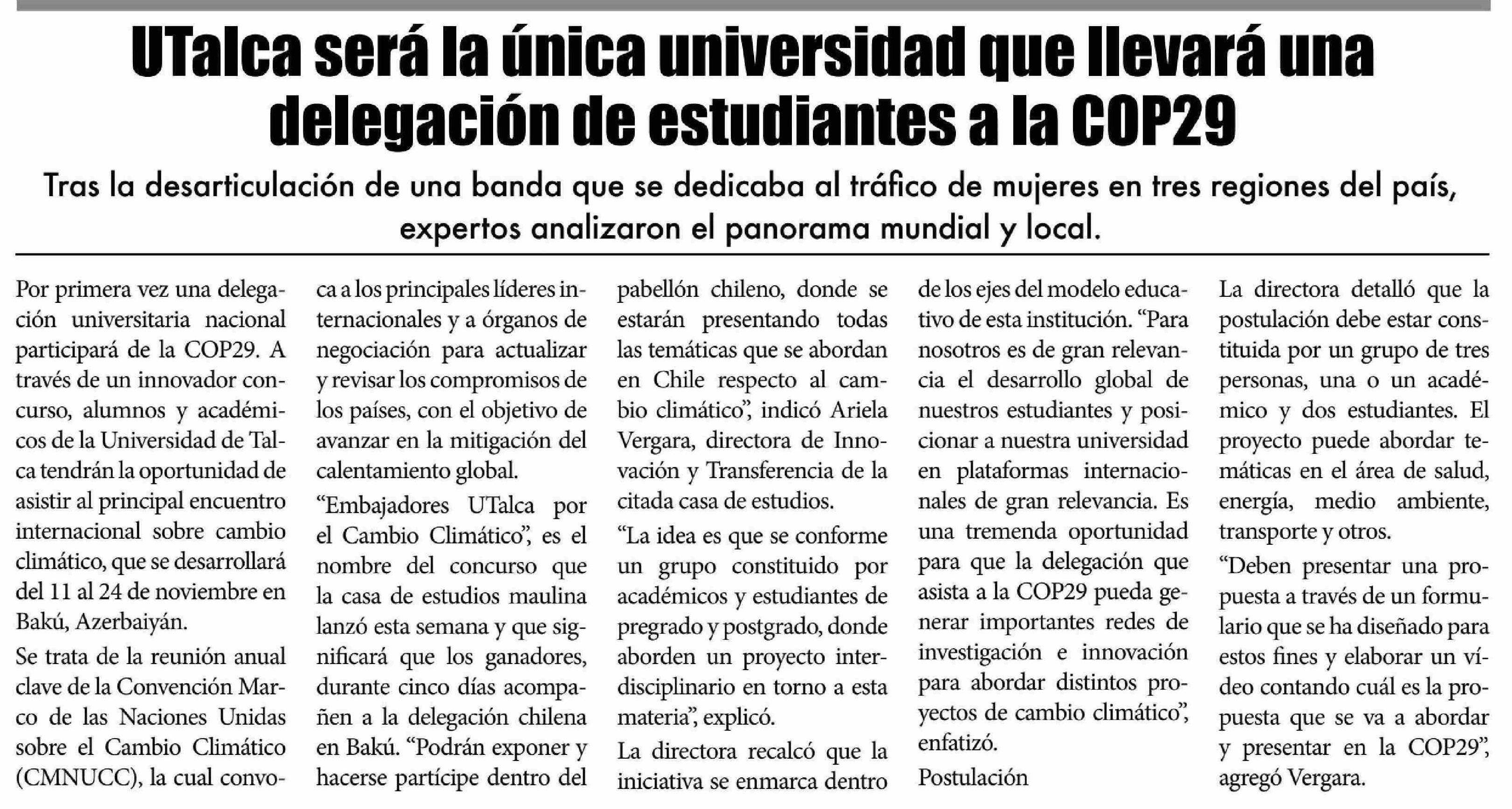 Delegación universitaria maulina participará en la COP29. Se refiere Ariela Vergara, directora de Innovación y Transferencia.