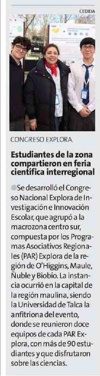 Estudiantes de la zona compartieron en feria científica interregional. Se menciona la Universidad de Talca.