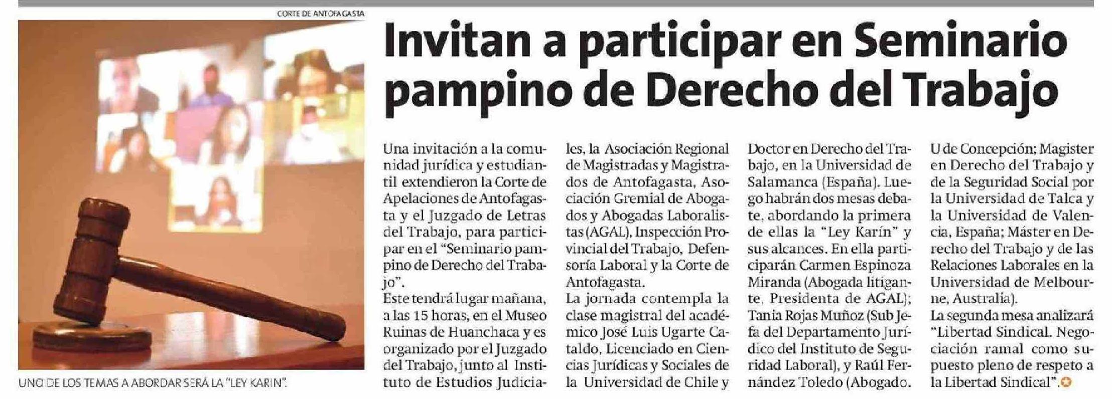 Invitan a participar en Seminario pampino de Derecho del Trabajo. Se menciona la Universidad de Talca.
