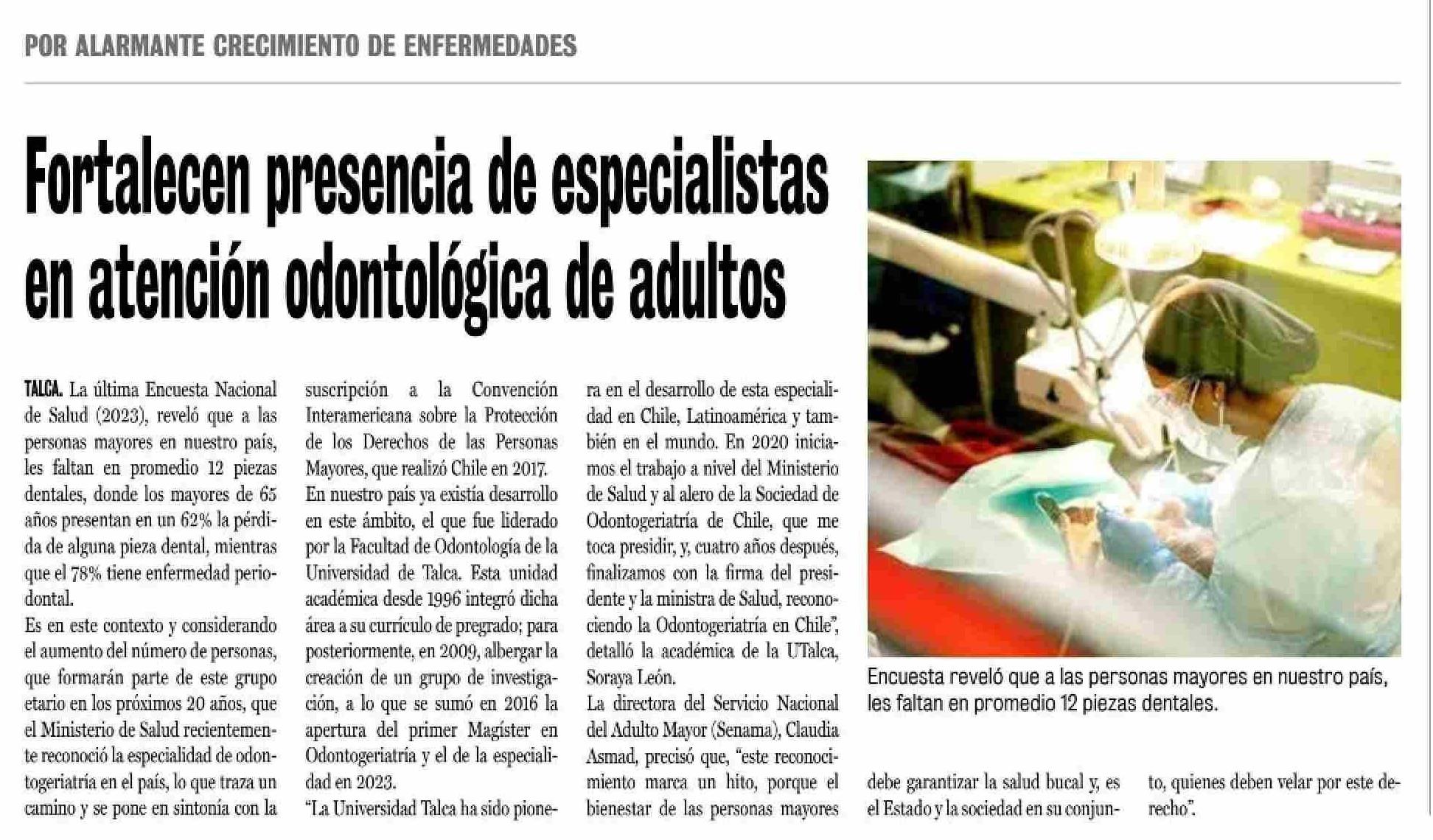 Fortalecen presencia de especialistas en atención odontológica de adultos. Se refiere Soraya León Araya, directora del Programa de Especialización en Odontogeriatría.