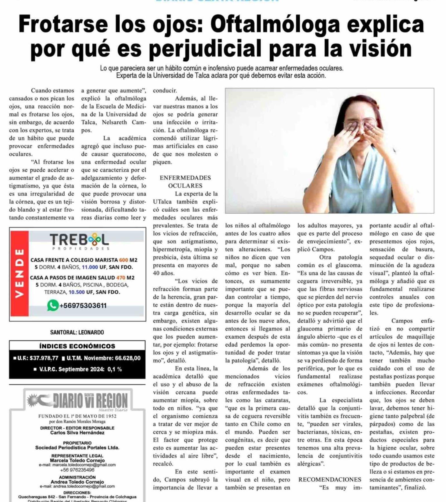Mucho cuidado con frotarse los ojos: por qué los expertos desaconsejan esta manía. Se refiere Nelsareth Campos, académica de la Escuela de Medicina.