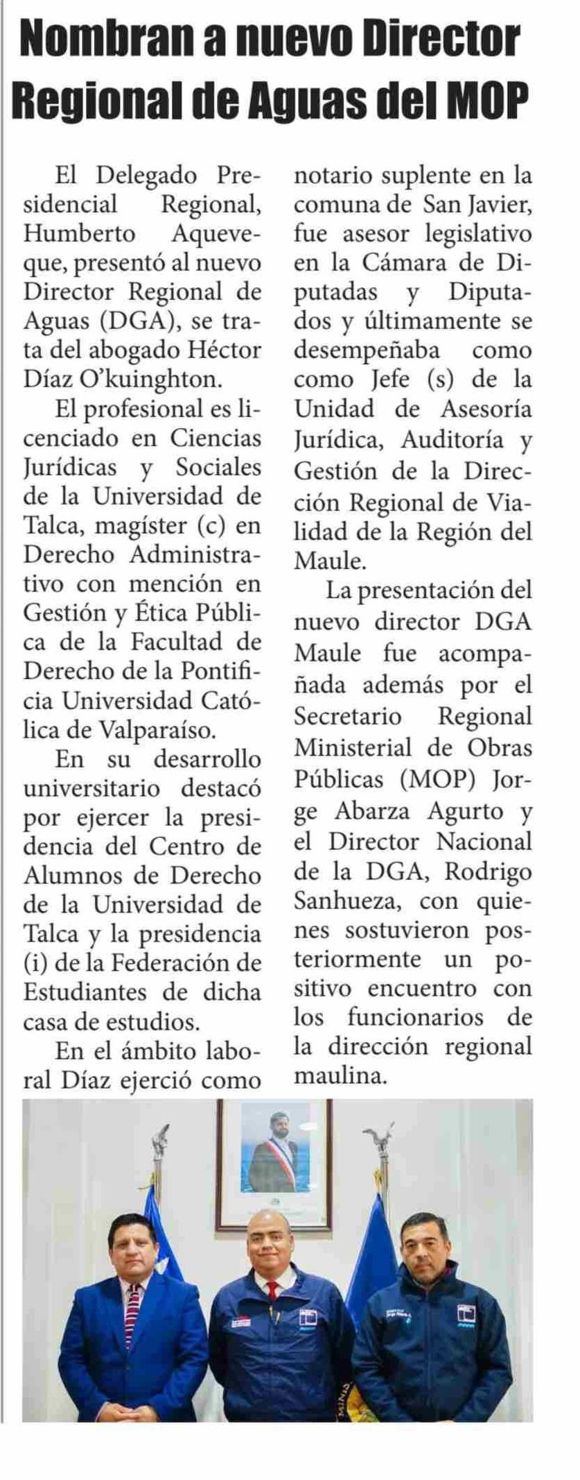 Nombran a nuevo Director Regional de Aguas del MOP. Se menciona la Universidad de Talca.