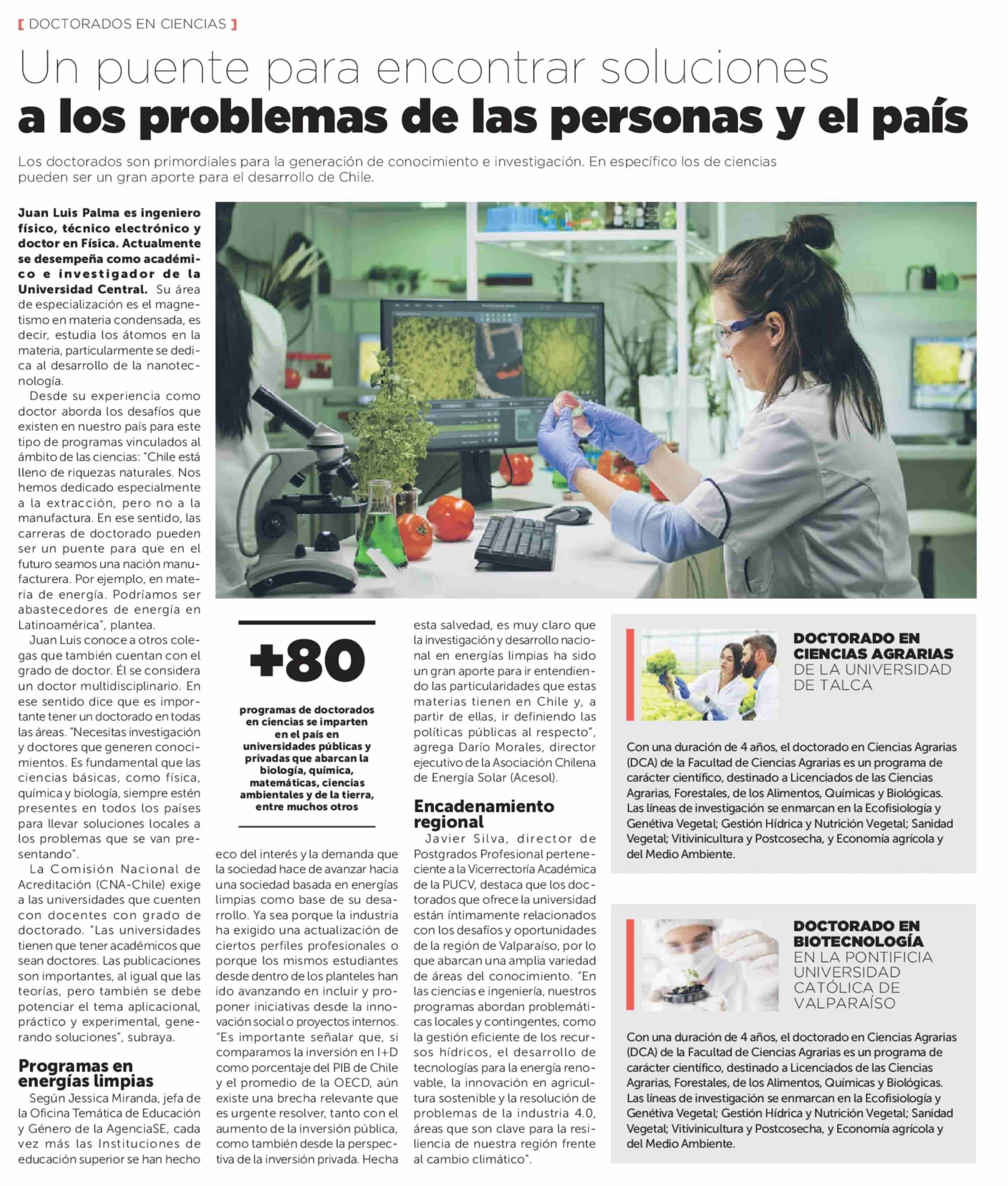 Un puente para encontrar soluciones a los problemas de las personas y el país. Se menciona al Doctorado en Ciencias Agrarias.