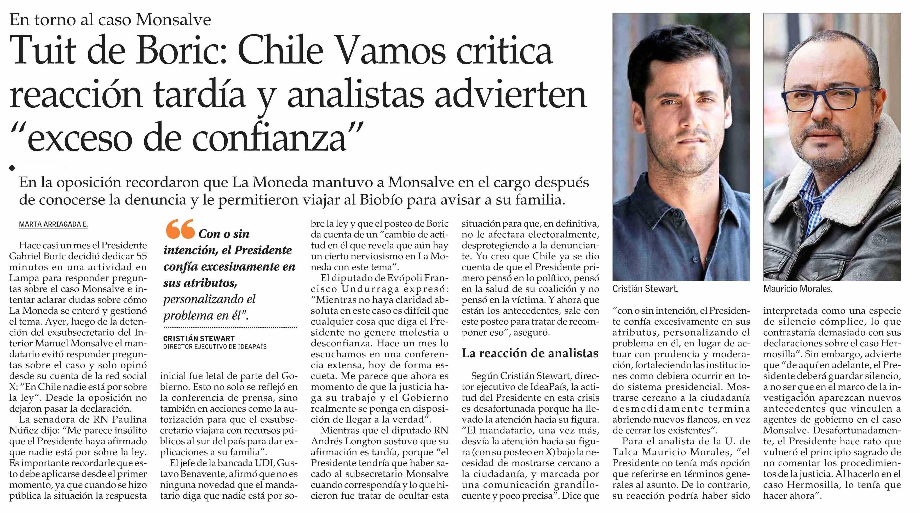Analistas afirman que detención del exsubsecretario desvió el foco de la compleja semana del FA. Se refiere Mauricio Morales Quiroga, director del Centro de Análisis Político (CAP).