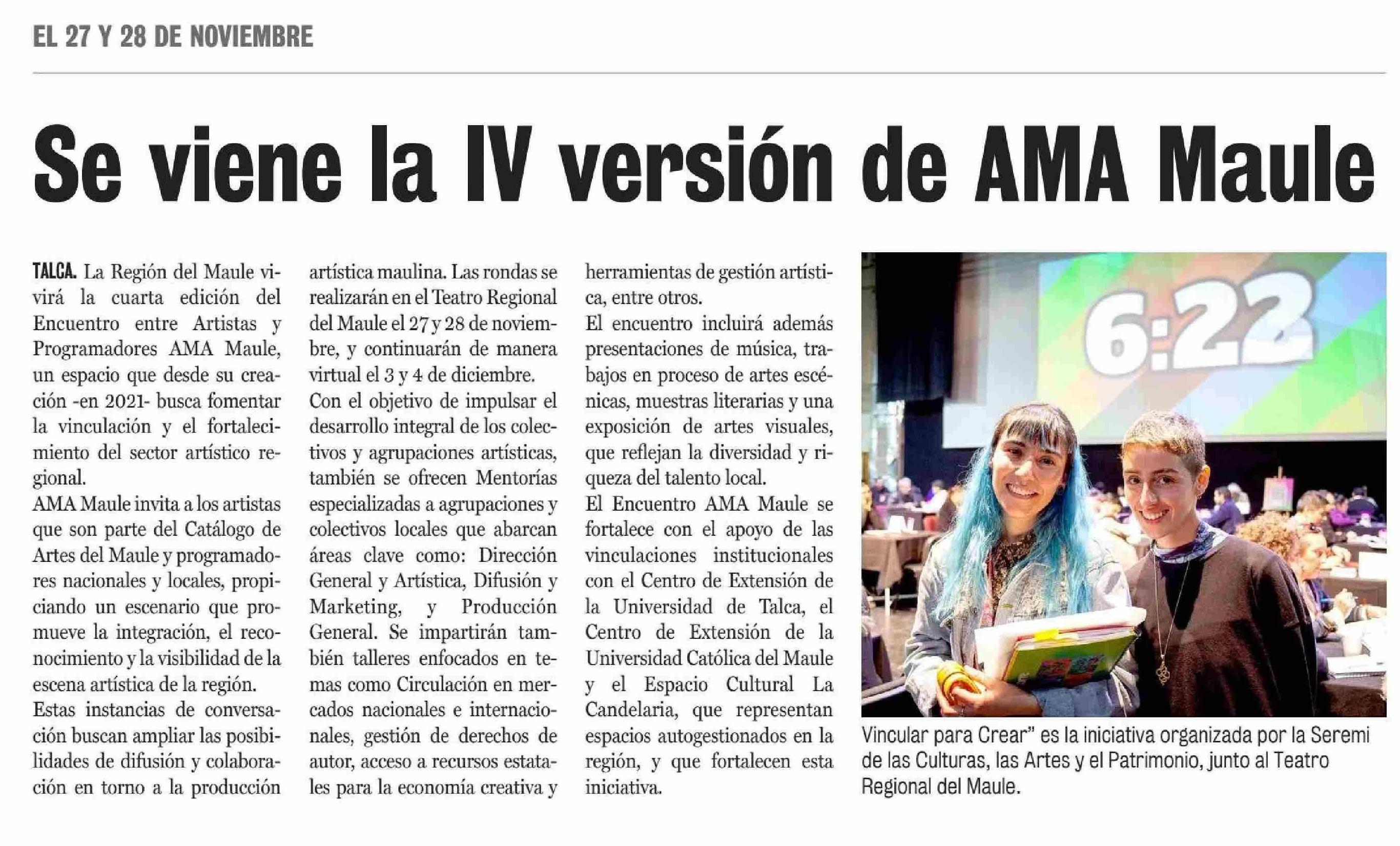 El Encuentro de vinculación entre artistas maulinos y programadores “AMA Maule” se prepara para vivir su IV edición. Se menciona la Universidad de Talca.
