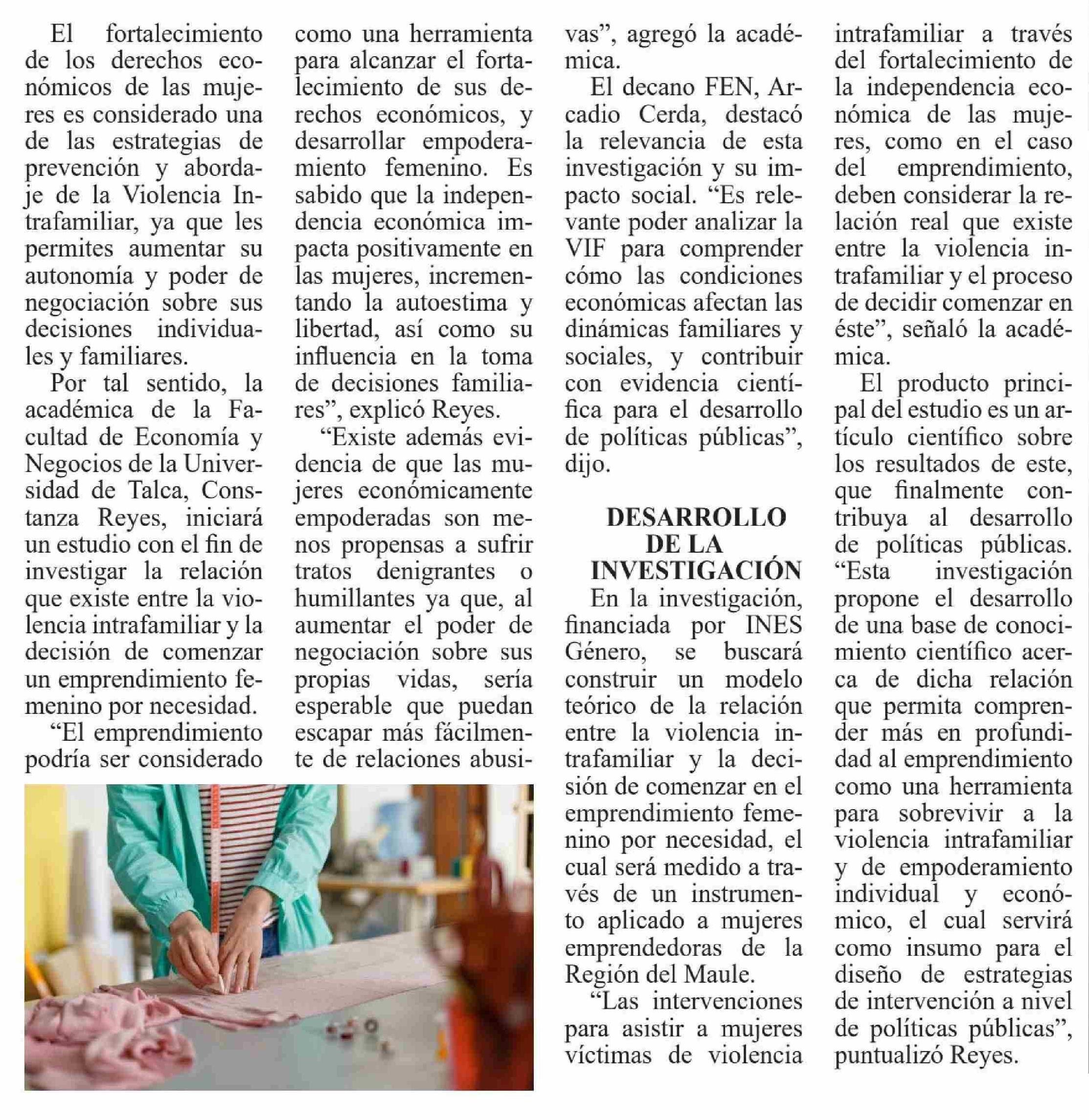 Investigarán sobre derechos económicos de mujeres como herramienta de prevención de violencia intrafamiliar. Se refiere Constanza Reyes, académica de la Facultad de Economía y Negocios.