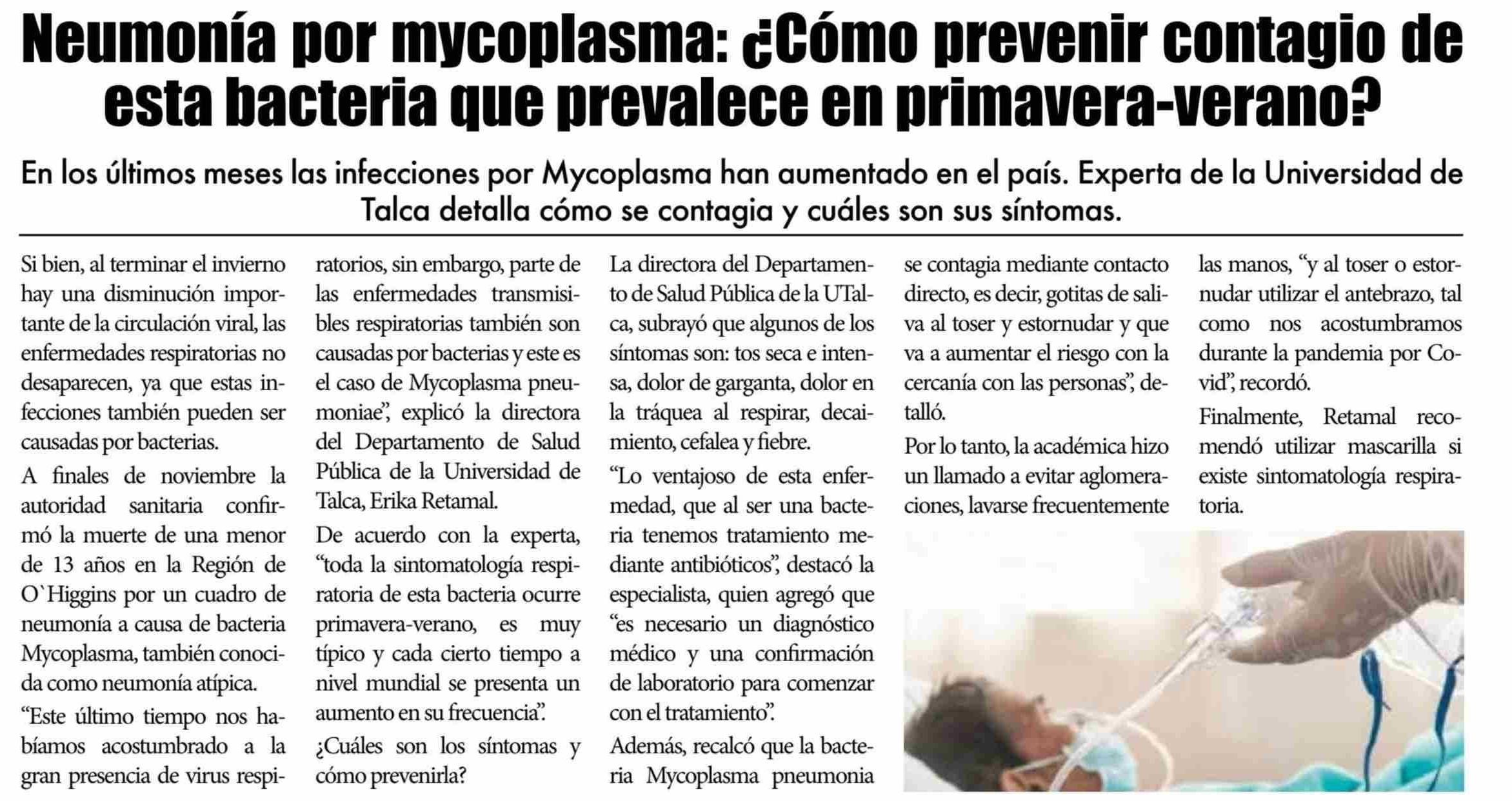 Neumonía por mycoplasma: ¿Cómo prevenir contagio de esta bacteria que prevalece en primavera-verano? Se refiere Érika Retamal, directora del Departamento de Salud Pública.