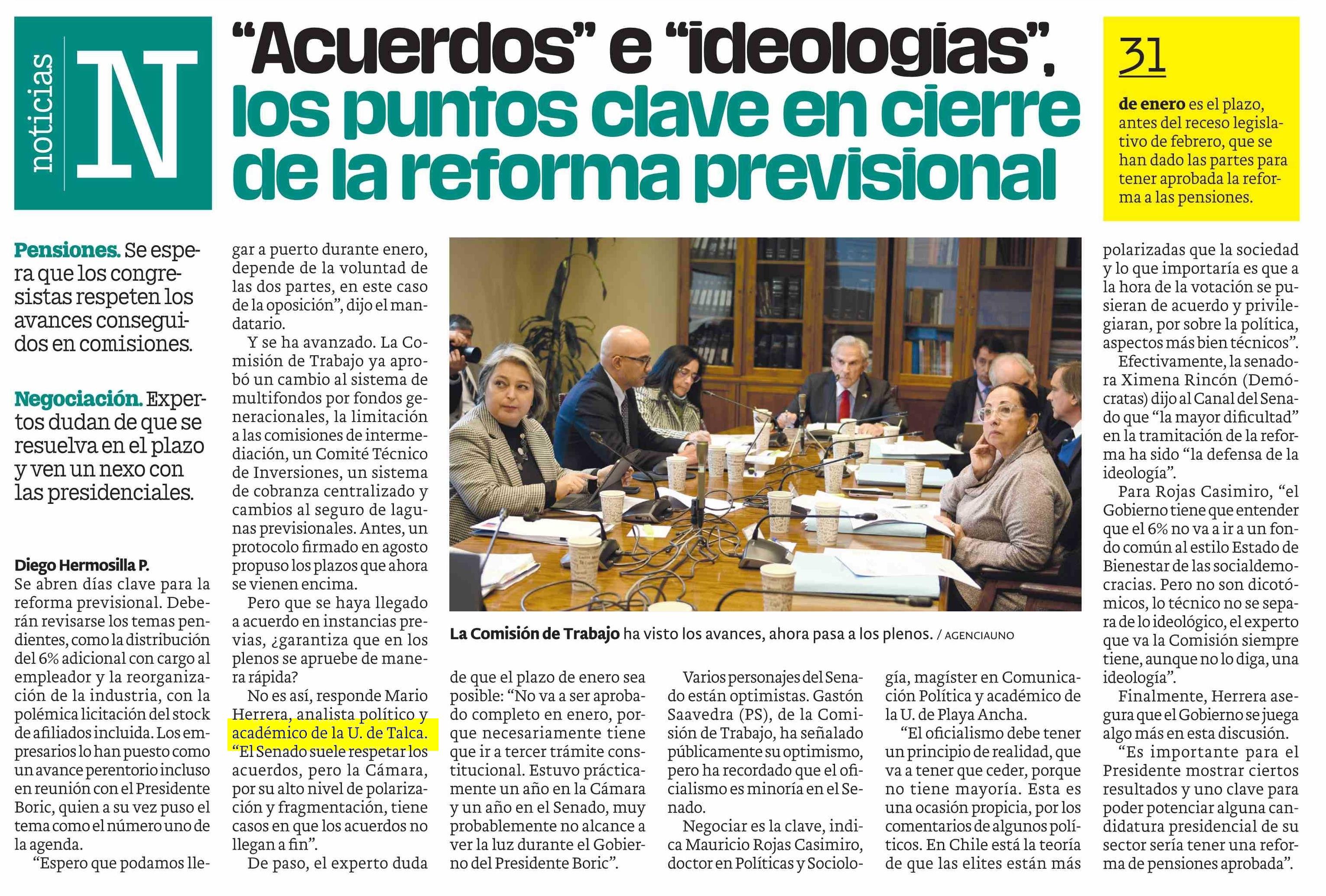 “Acuerdos” e “ideologías”, los puntos clave en cierre de la reforma previsional. Se refiere Mario Herrera Muñoz, académico del Centro de Análisis Político (CAP-UTalca).