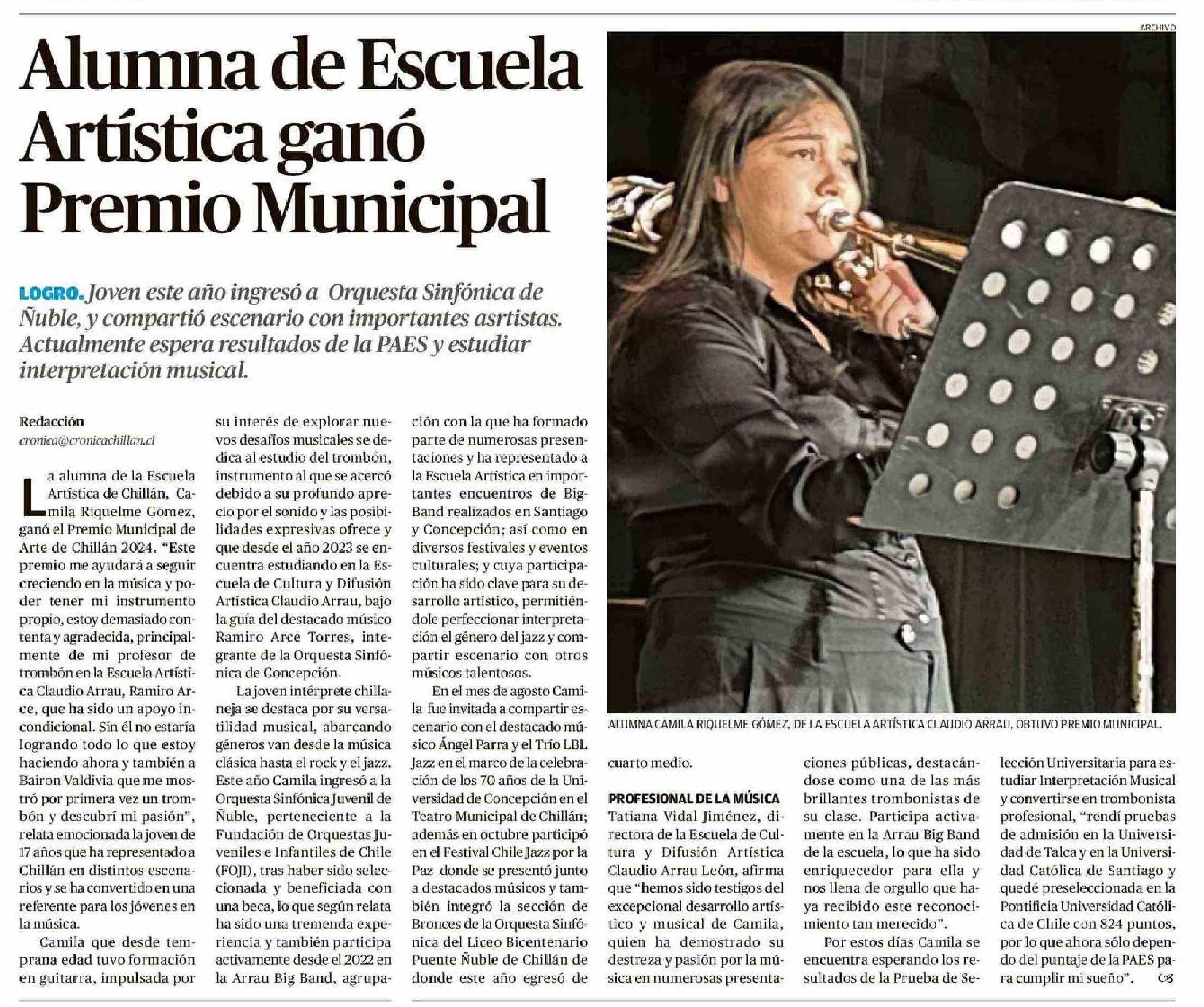 Ministerio de las Culturas anuncia Premios Presidente de la República 2024 a la Música Nacional y a las Artes Escénicas. Se menciona la Universidad de Talca.