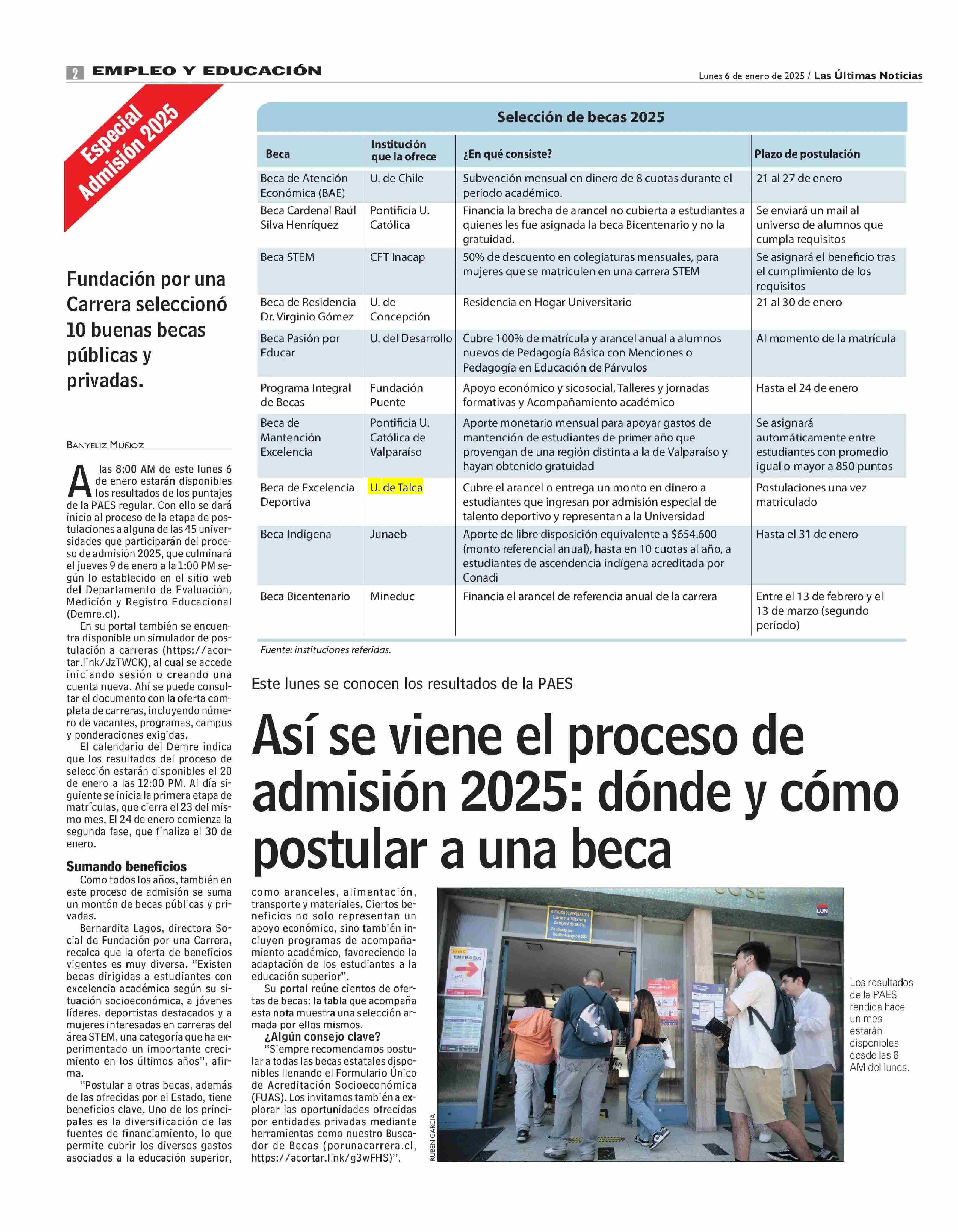 Así se viene el proceso de admisión 2025: dónde y cómo postular a una beca. Se menciona la Universidad de Talca.