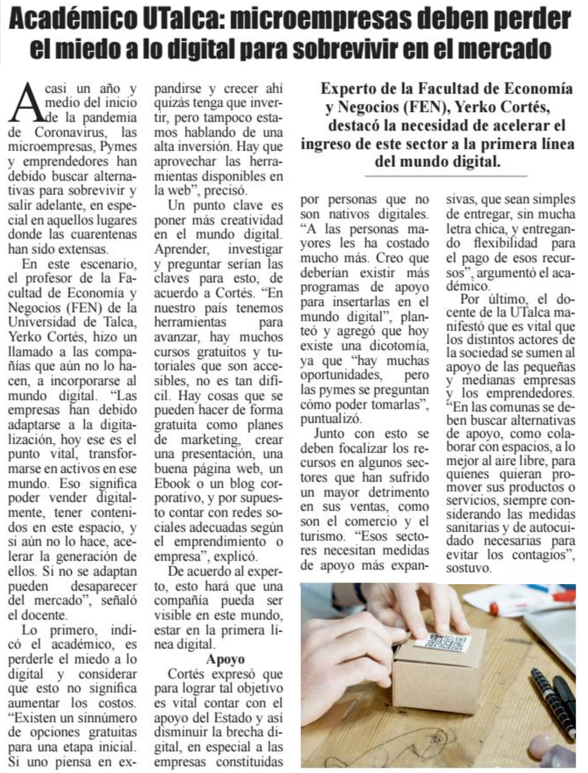 Académico UTalca: microempresas deben perder el miedo a lo digital para sobrevivir en el mercado.