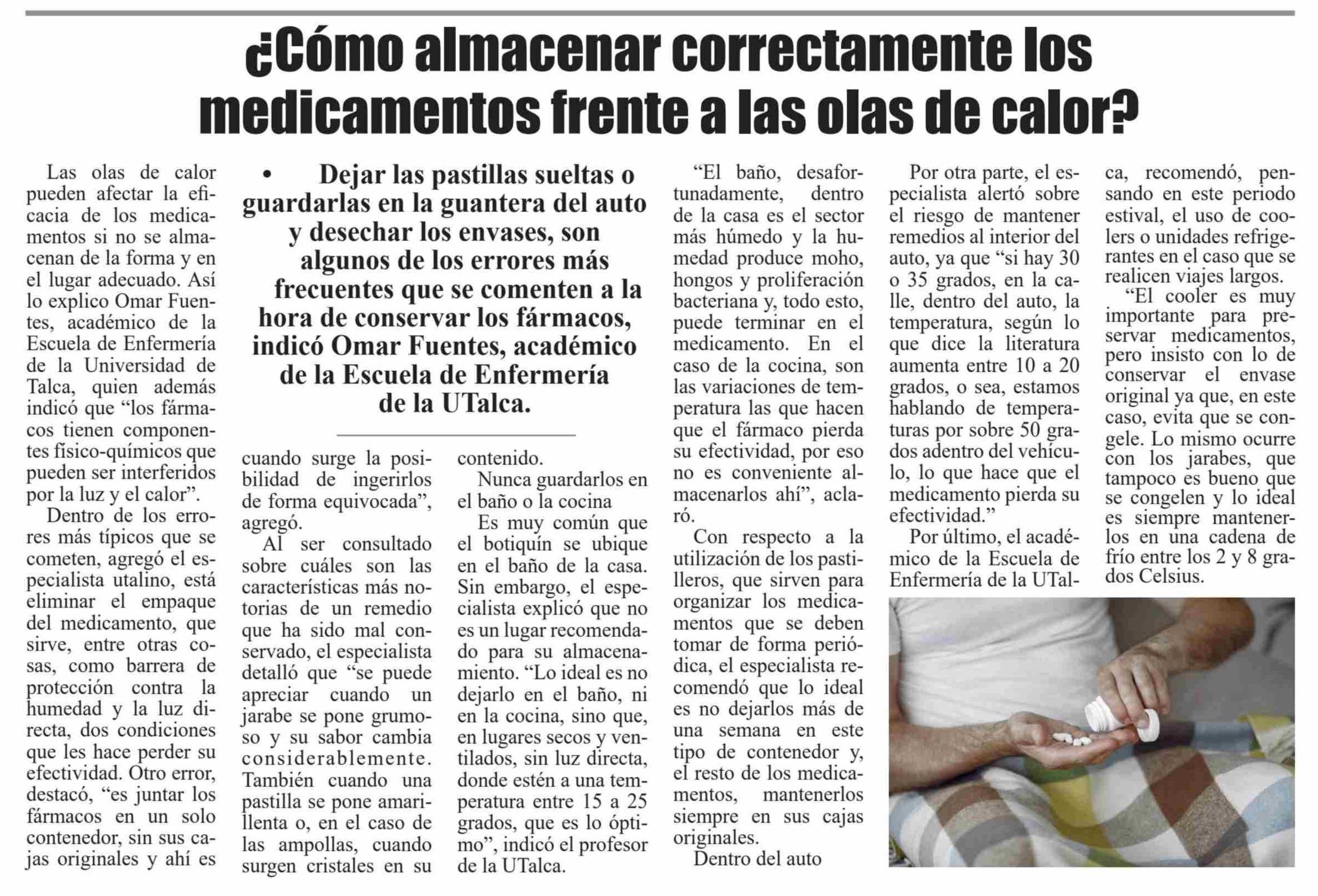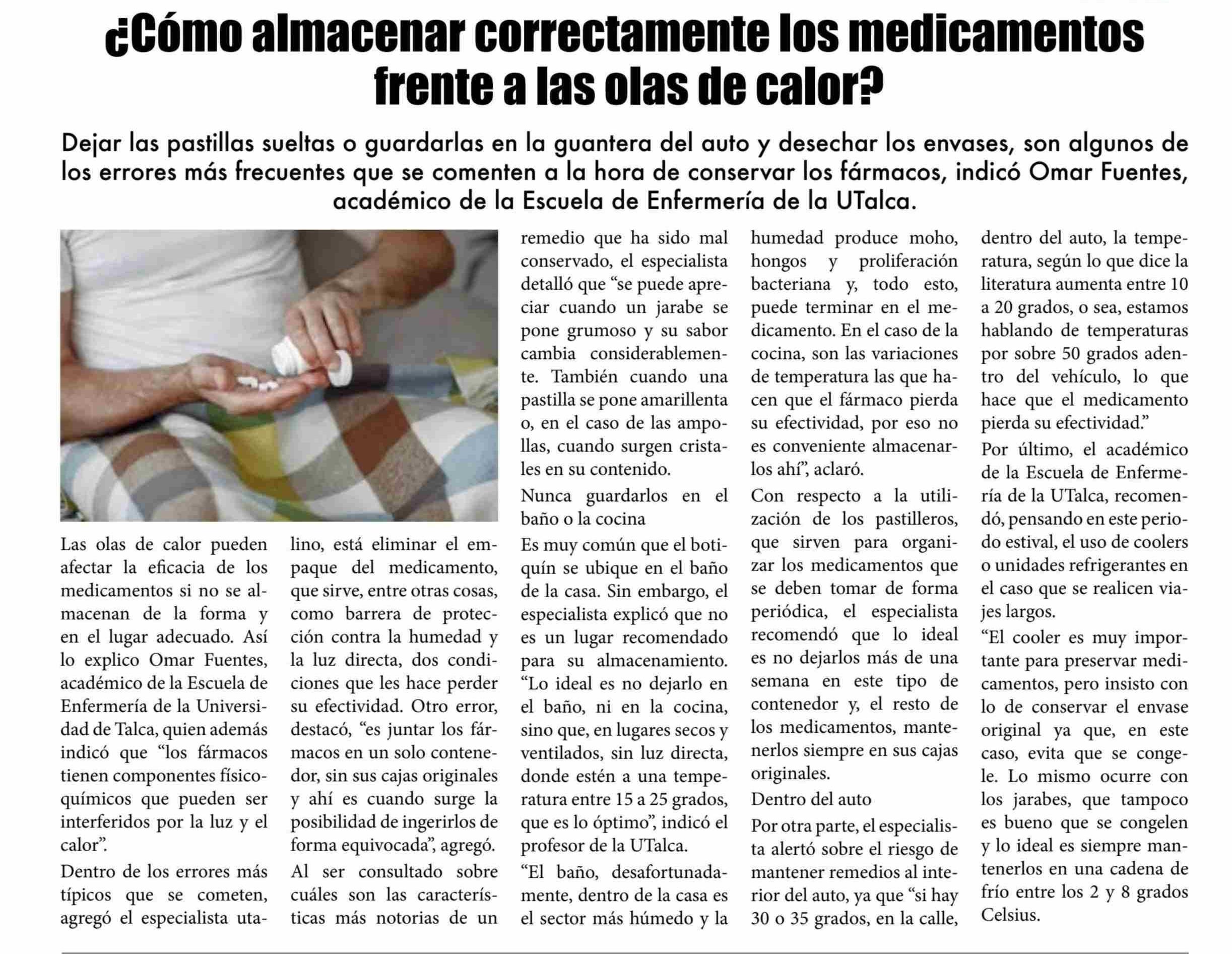 ¿Cómo almacenar correctamente los medicamentos frente a las olas de calor? Se refiere Omar Fuentes, académico de la Escuela de Enfermería.