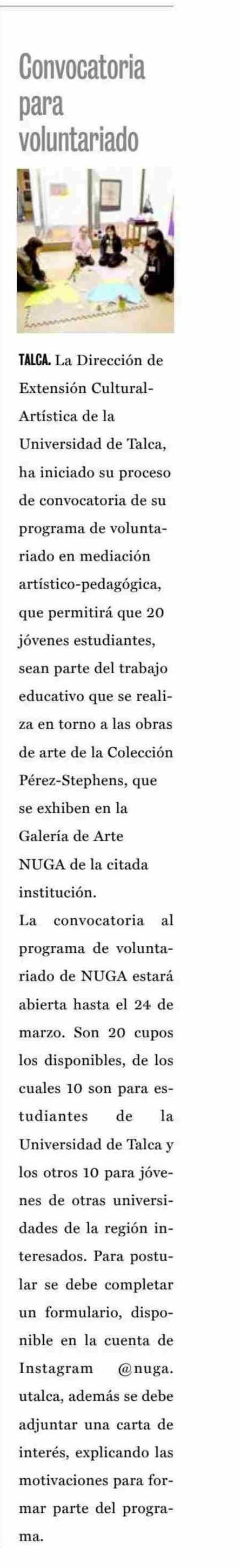 UTalca abre convocatoria para voluntariado en sus espacios culturales. Se refiere Marcela Albornoz Dachelet, directora de Extensión Cultural-Artística.
