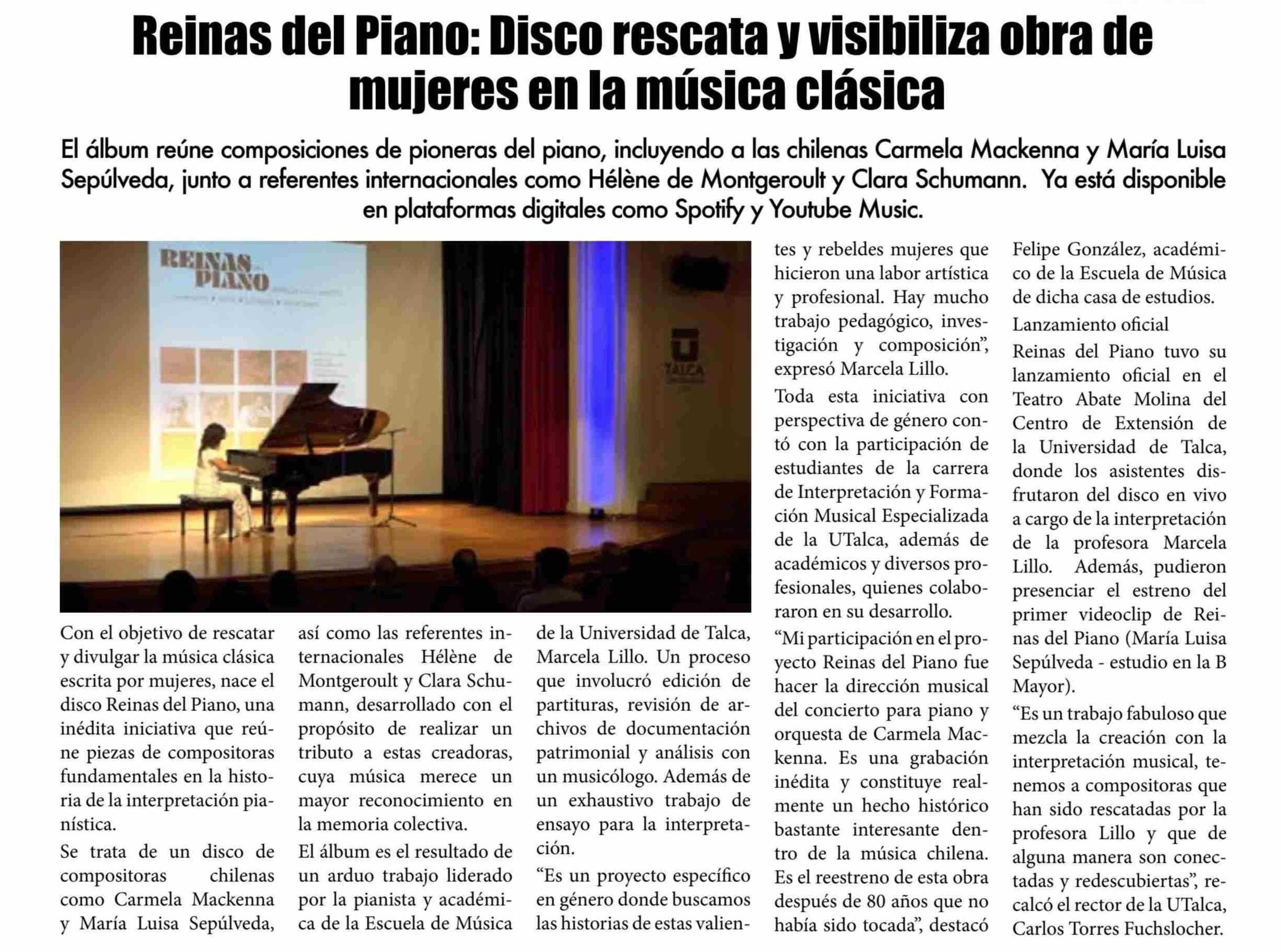 Reinas del Piano: Disco rescata y visibiliza obra de mujeres en la música clásica. Se refiere Felipe González, académico de la Escuela de Música y Marcela Lillo, académica de la mencionada escuela.