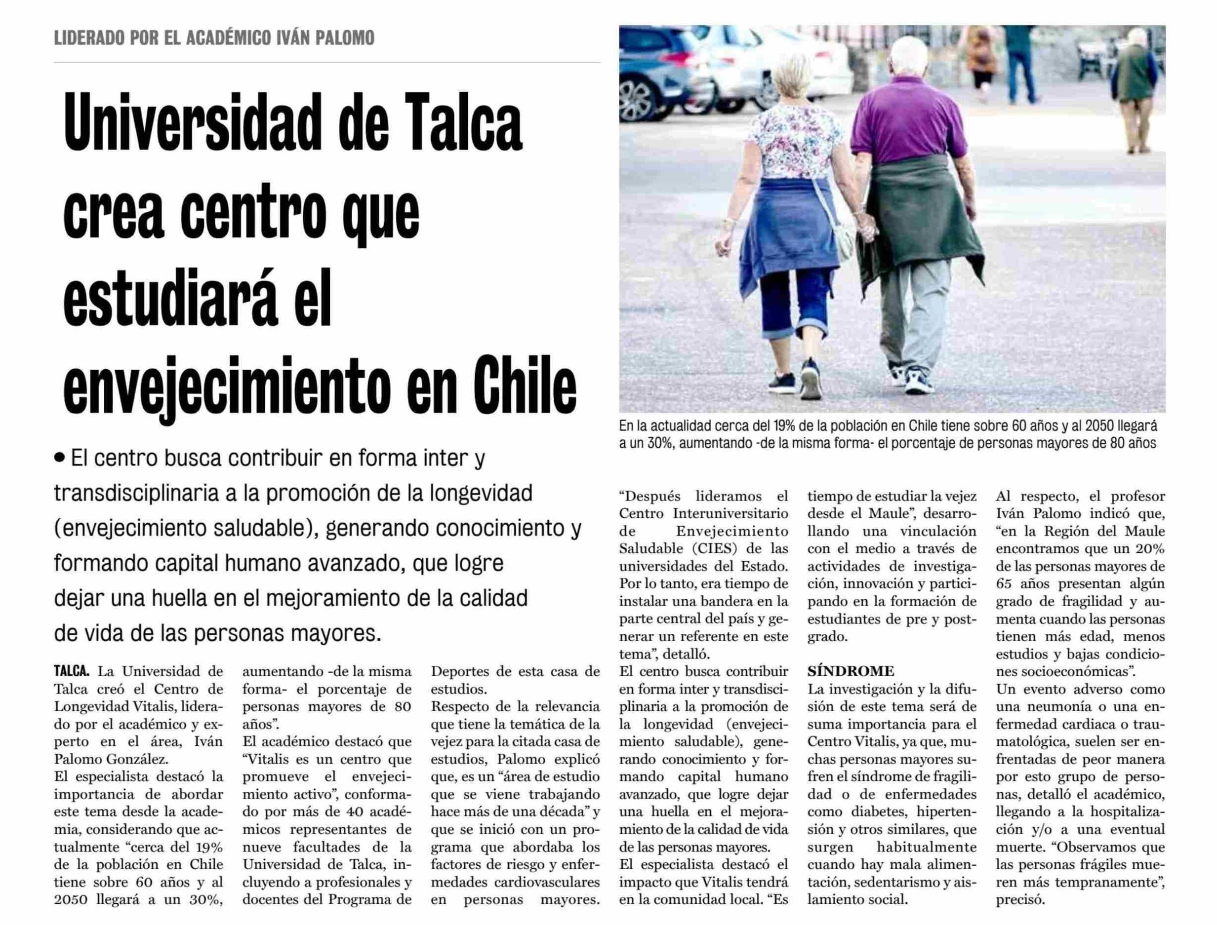 Universidad de Talca crea centro que estudiará el envejecimiento en Chile. Se refiere Iván Palomo González, director del Centro de Longevidad Vitalis.