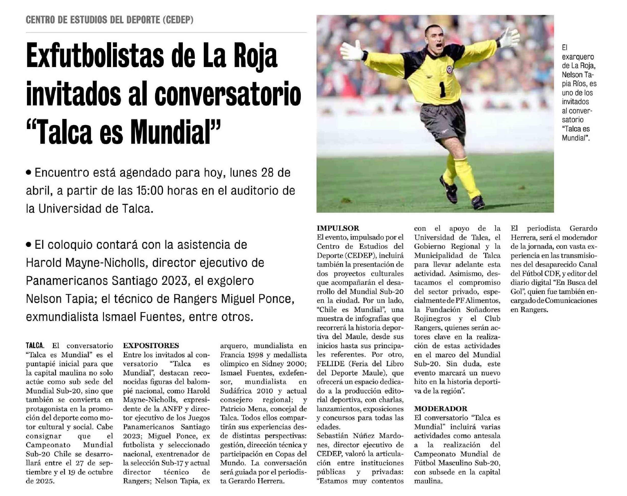 Exfutbolistas de La Roja invitados al conversatorio “Talca es Mundial”