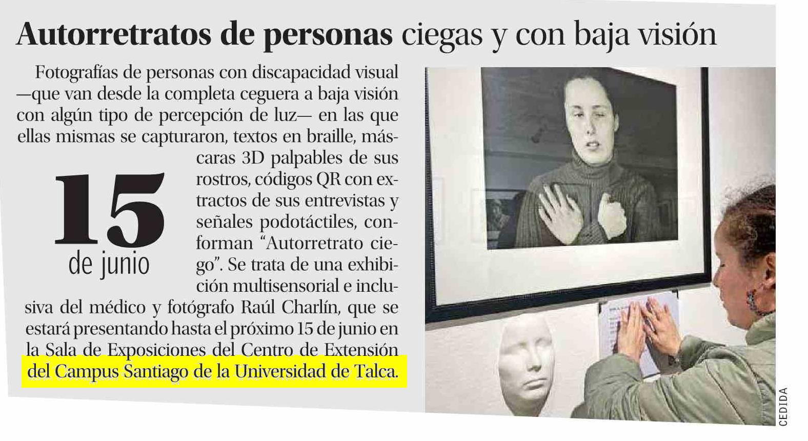 Autorretratos de personas ciegas y con baja visión. Se menciona la Universidad de Talca.