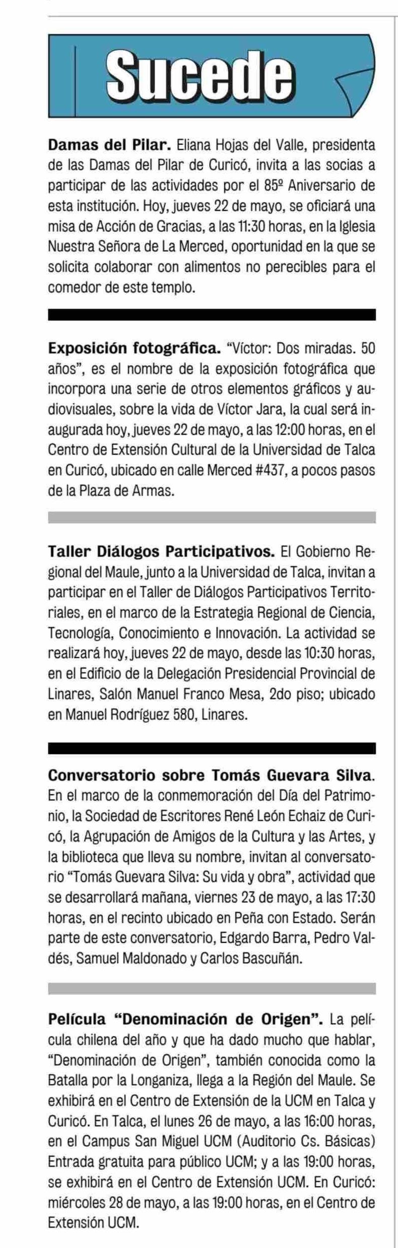 Columnas de Opinión: Trabajo y Archipiélago de Chiloé. Se menciona la Universidad de Talca.