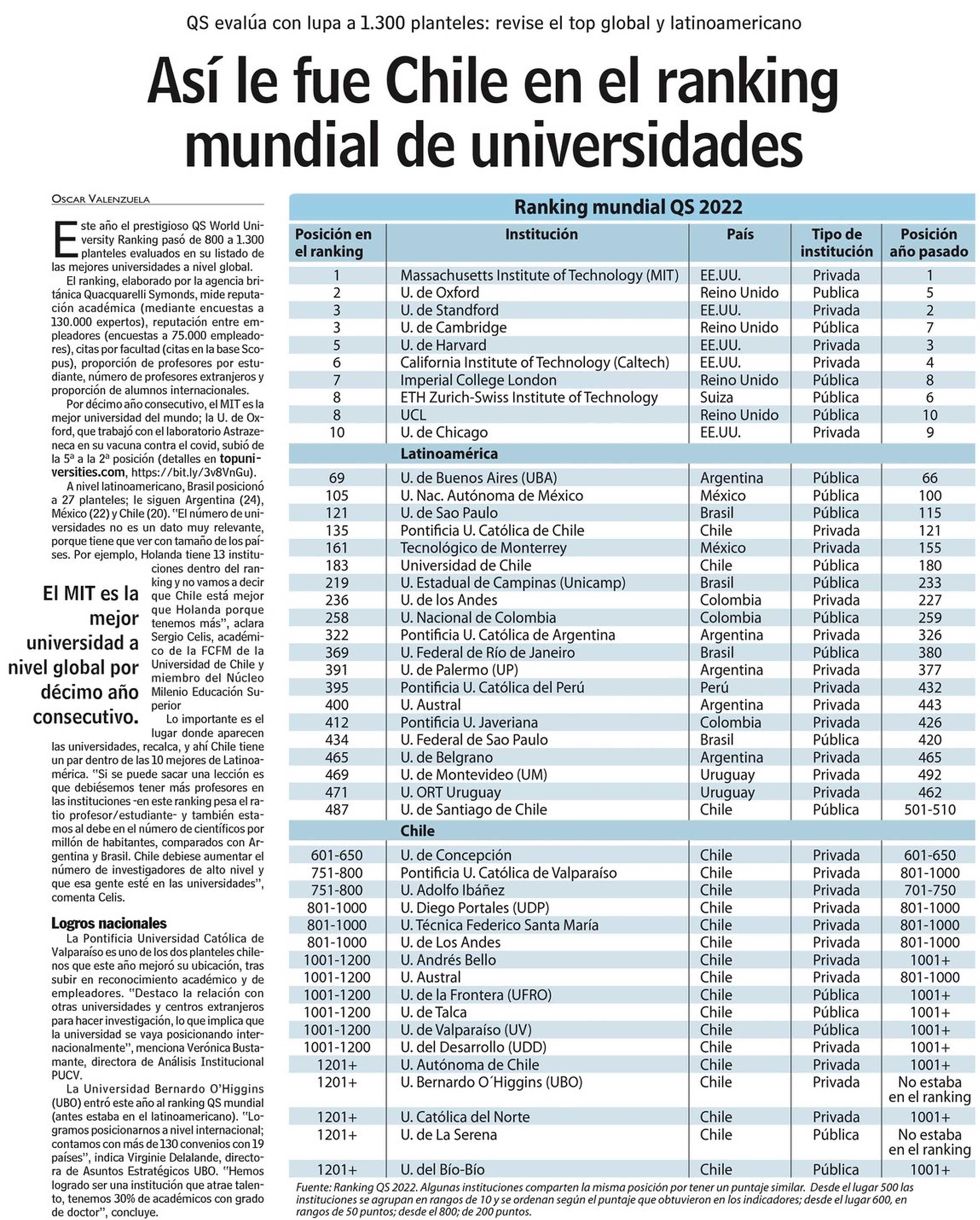 Así le fue Chile en el ranking mundial de universidades. Se menciona a la UTalca.
