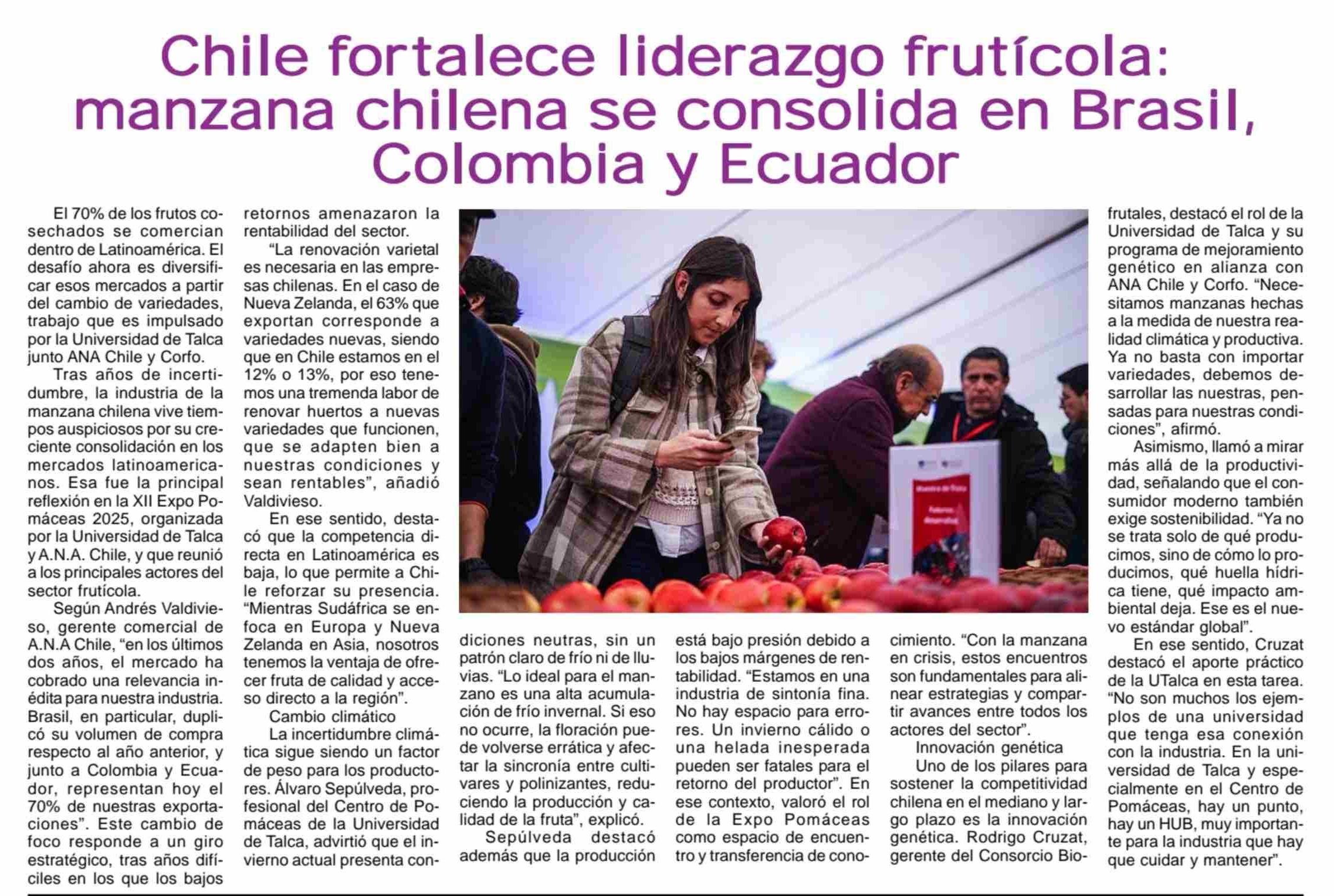 Chile fortalece liderazgo frutícola: manzana chilena se consolida en Brasil, Colombia y Ecuador. Se refiere Álvaro Sepúlveda, investigador del Centro de Pomáceas.