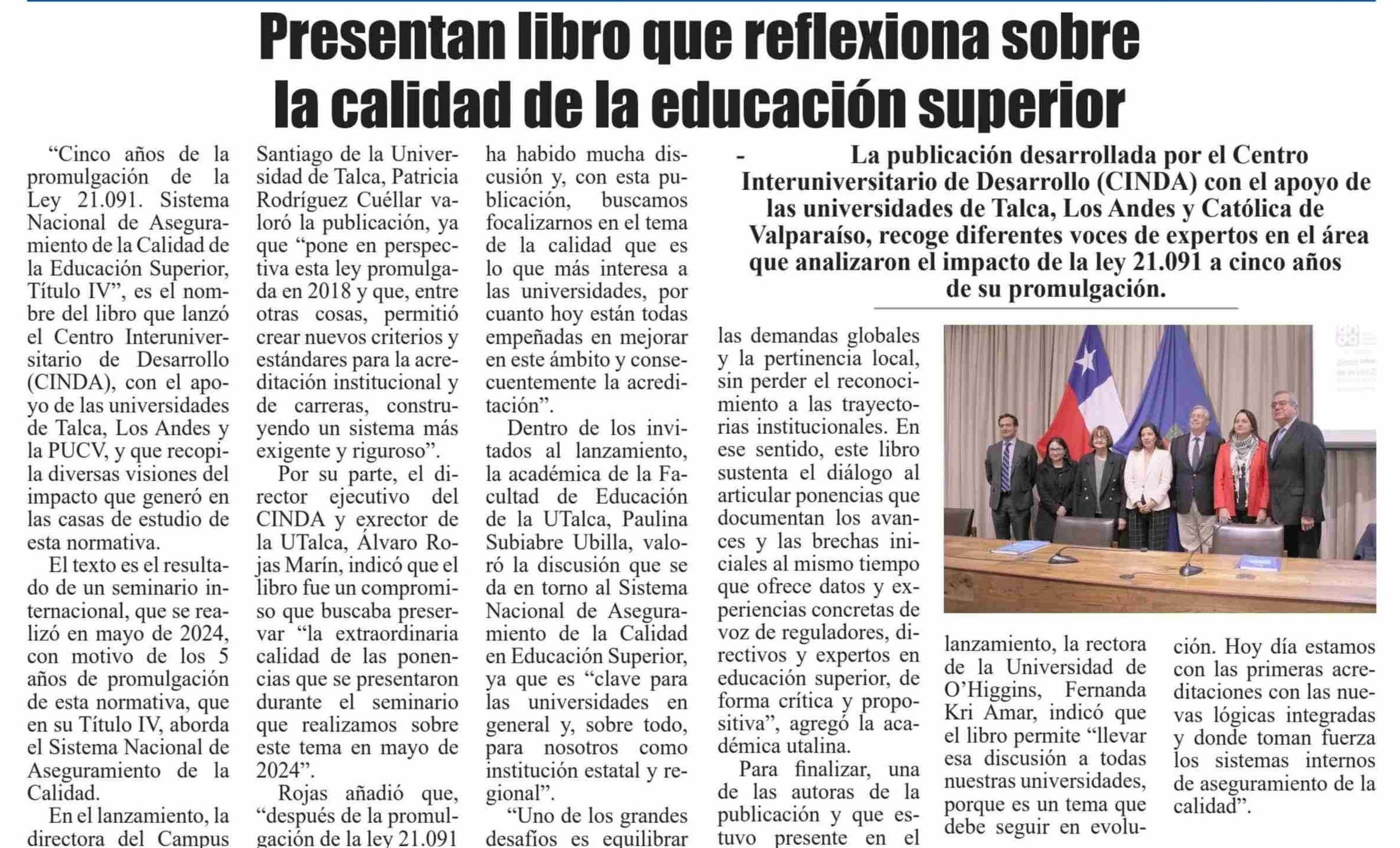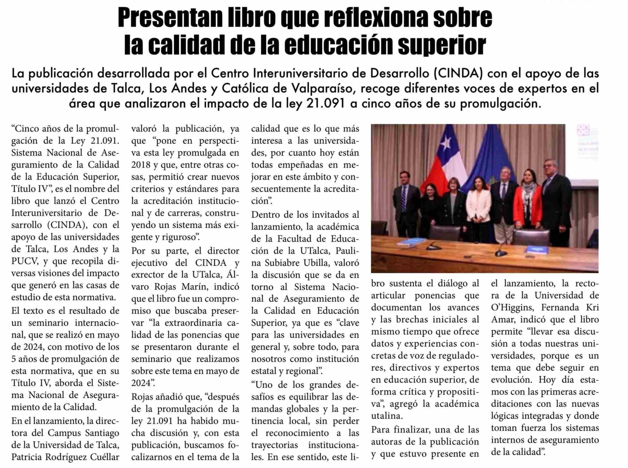 Centro Interuniversitario de Desarrollo analiza los primeros 5 años de la Ley de Educación Superior en nuevo libro. Se menciona la Universidad de Talca.