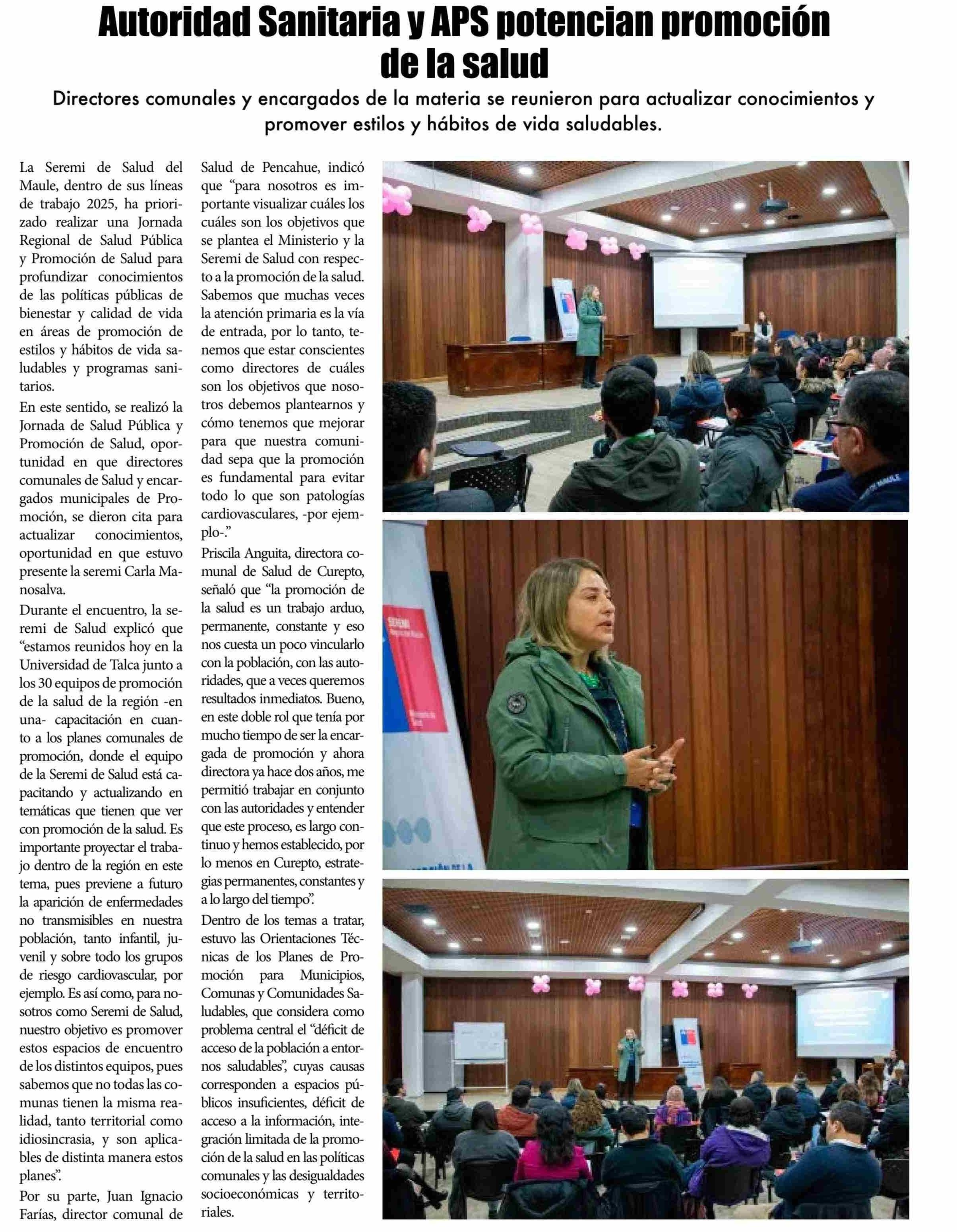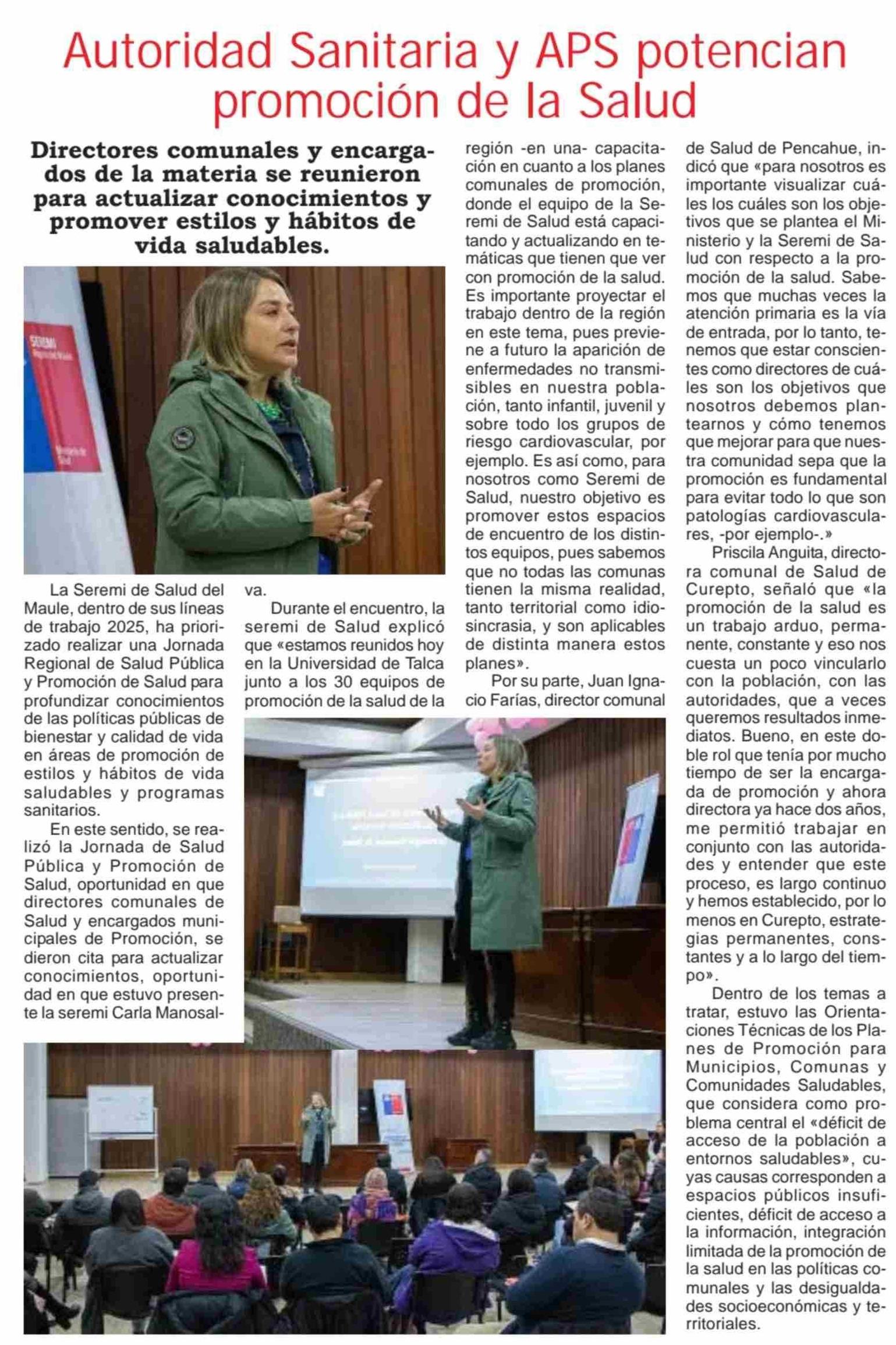 Autoridad Sanitaria y APS potencian promoción de la salud. Se menciona la Universidad de Talca.