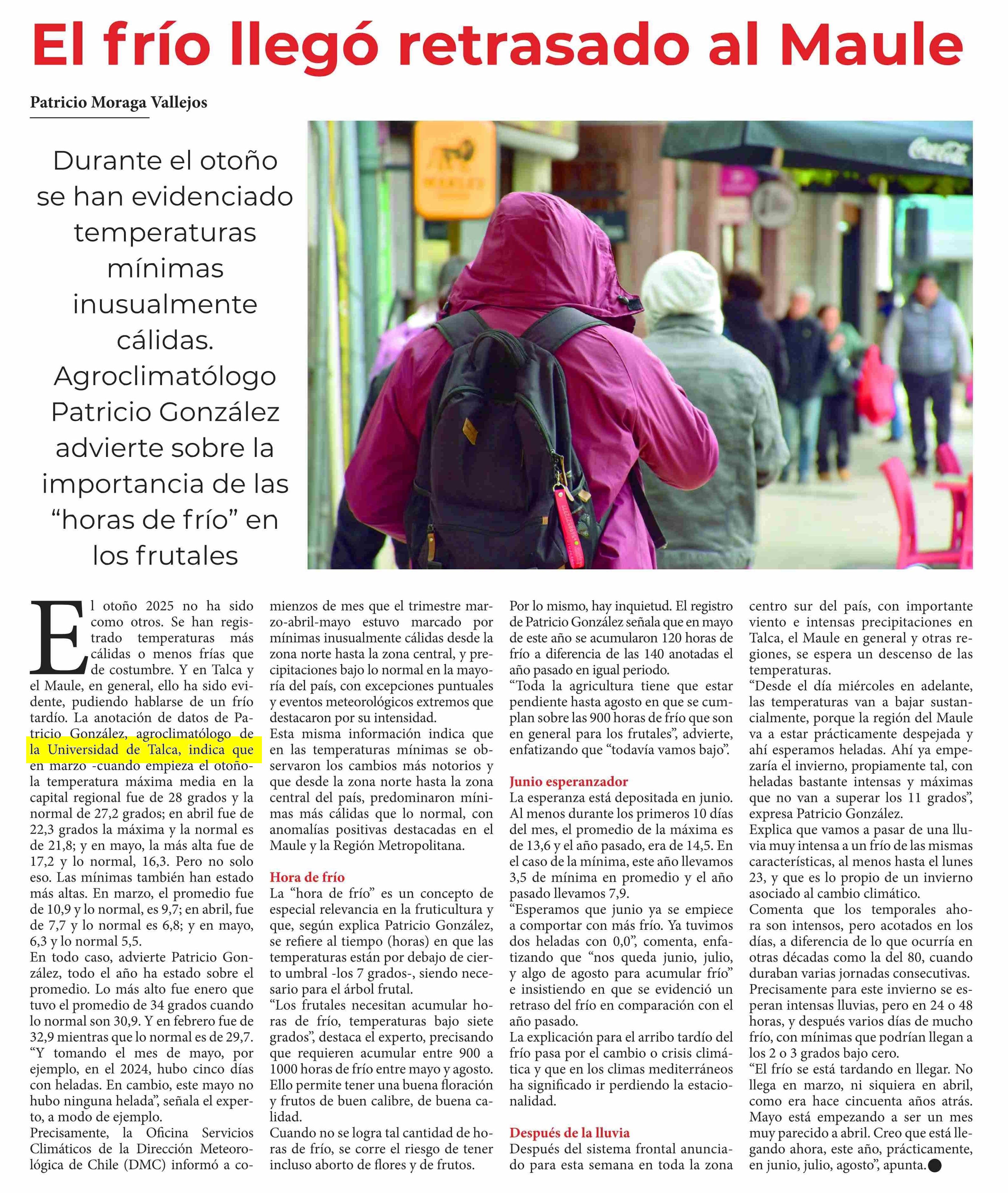 Entrevista a Patricio González Colville, agroclimatólogo y académico del Centro de Investigación y Transferencia en Riego y Agroclimatología (CITRA).