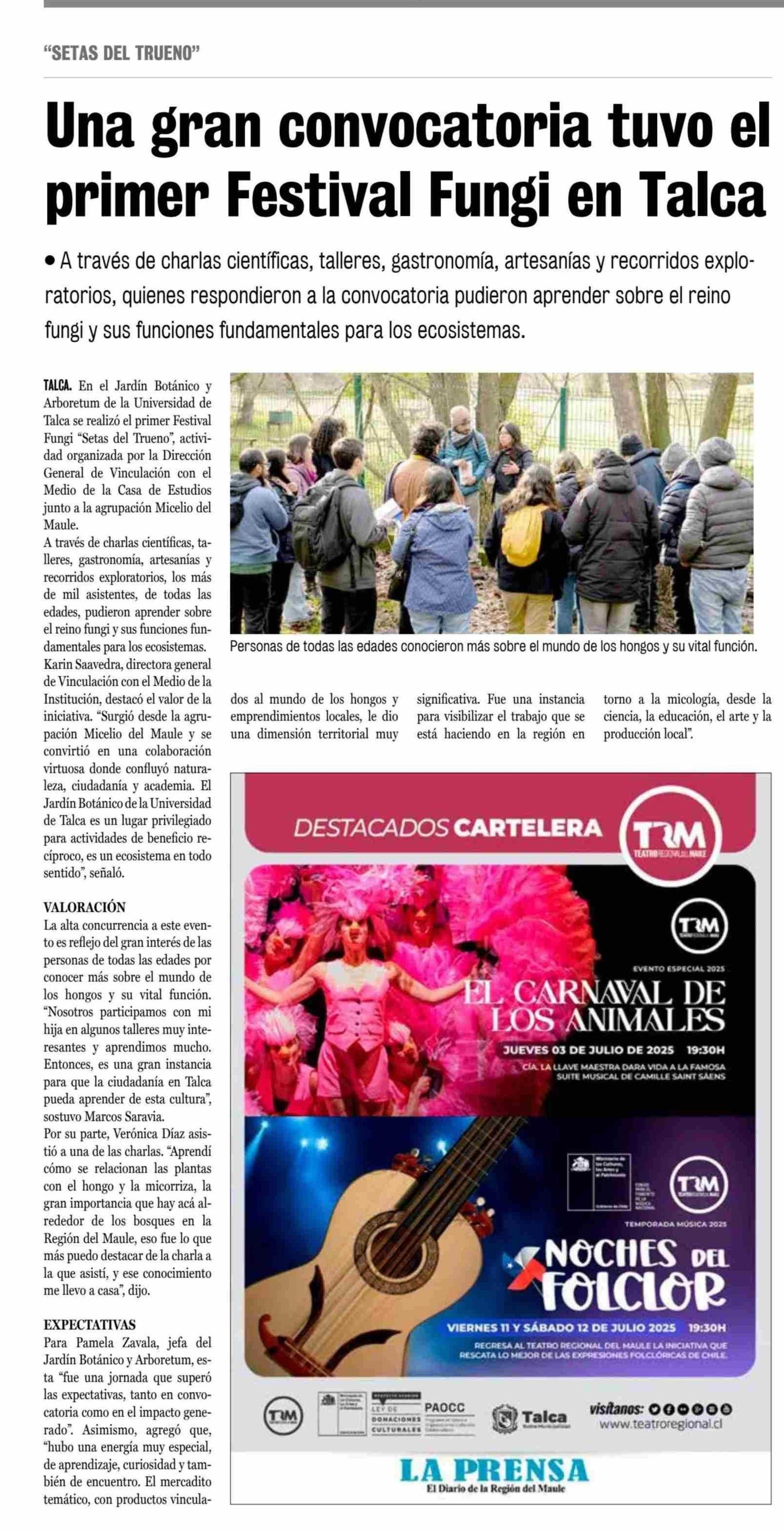 Una gran convocatoria tuvo el Primer Festival Fungi en Talca. Se refiere Karin Saavedra, directora general de Vinculación con el Medio y Pamela Zavala, jefa del Jardín Botánico