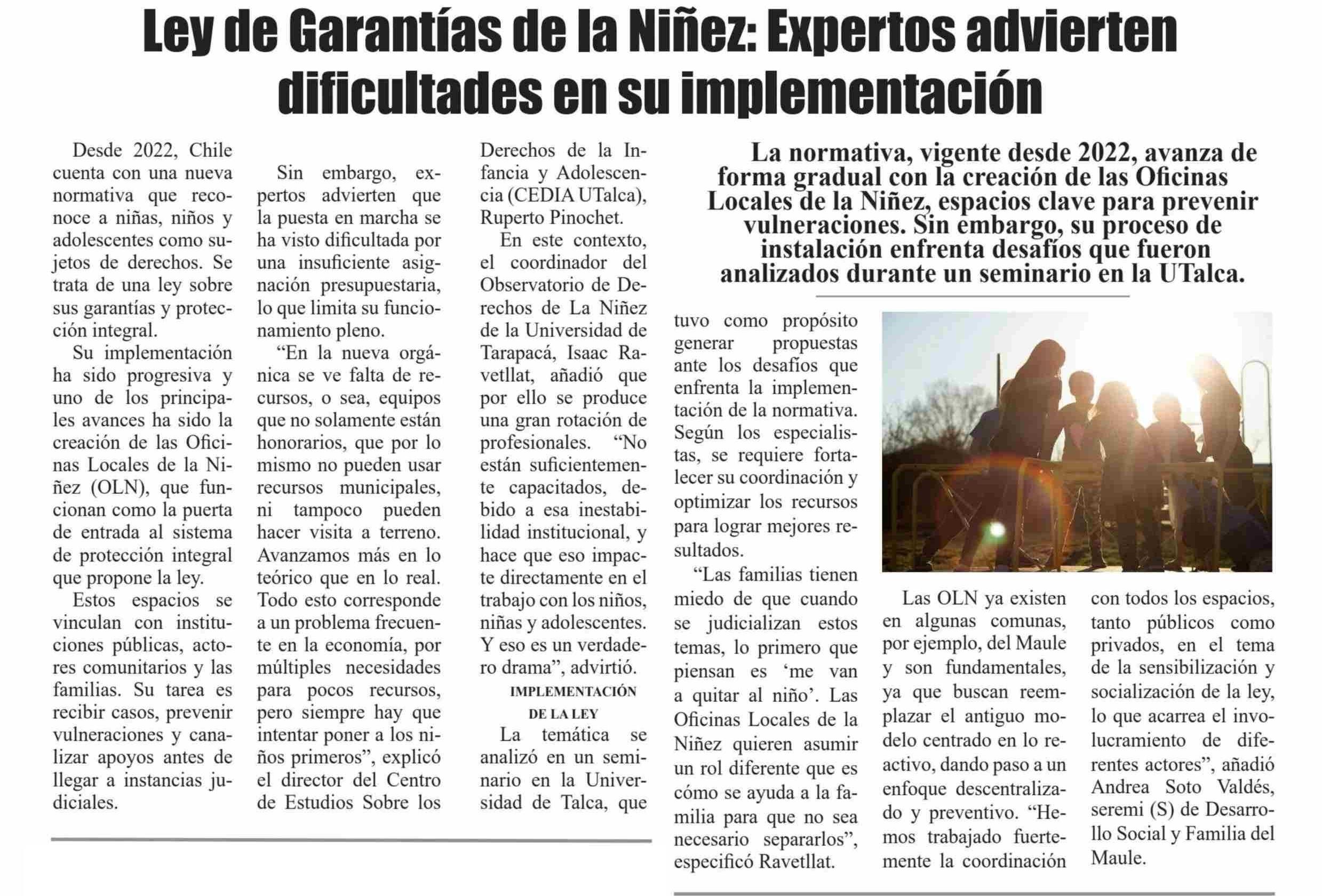 Ley de Garantías de la Niñez: Expertos advierten dificultades en su implementación. Se refiere Ruperto Pinochet, director del Centro de Estudios Sobre los Derechos de la Infancia y Adolescencia (CEDIA UTalca).