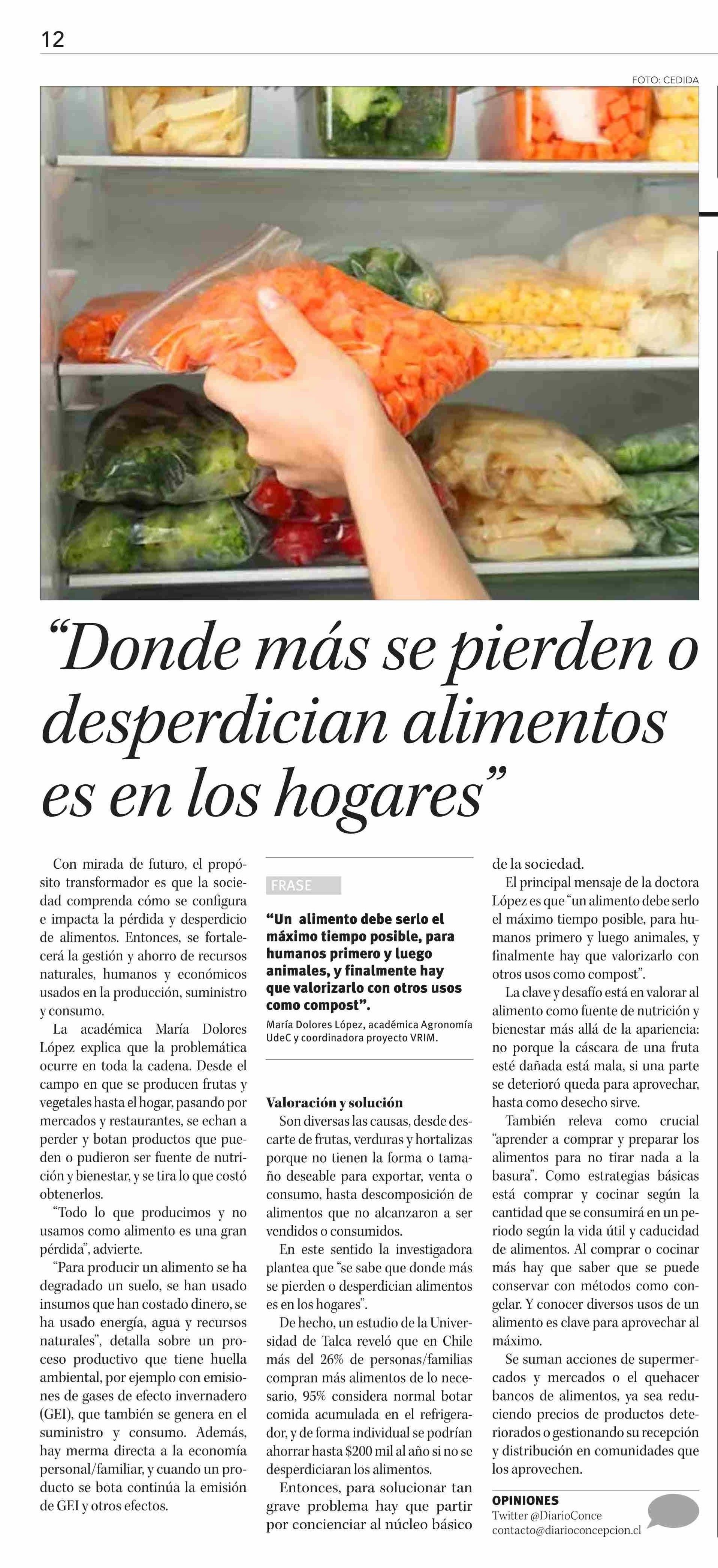 “Donde más se pierden o desperdician alimentos es en los hogares”. Se menciona la Universidad de Talca.