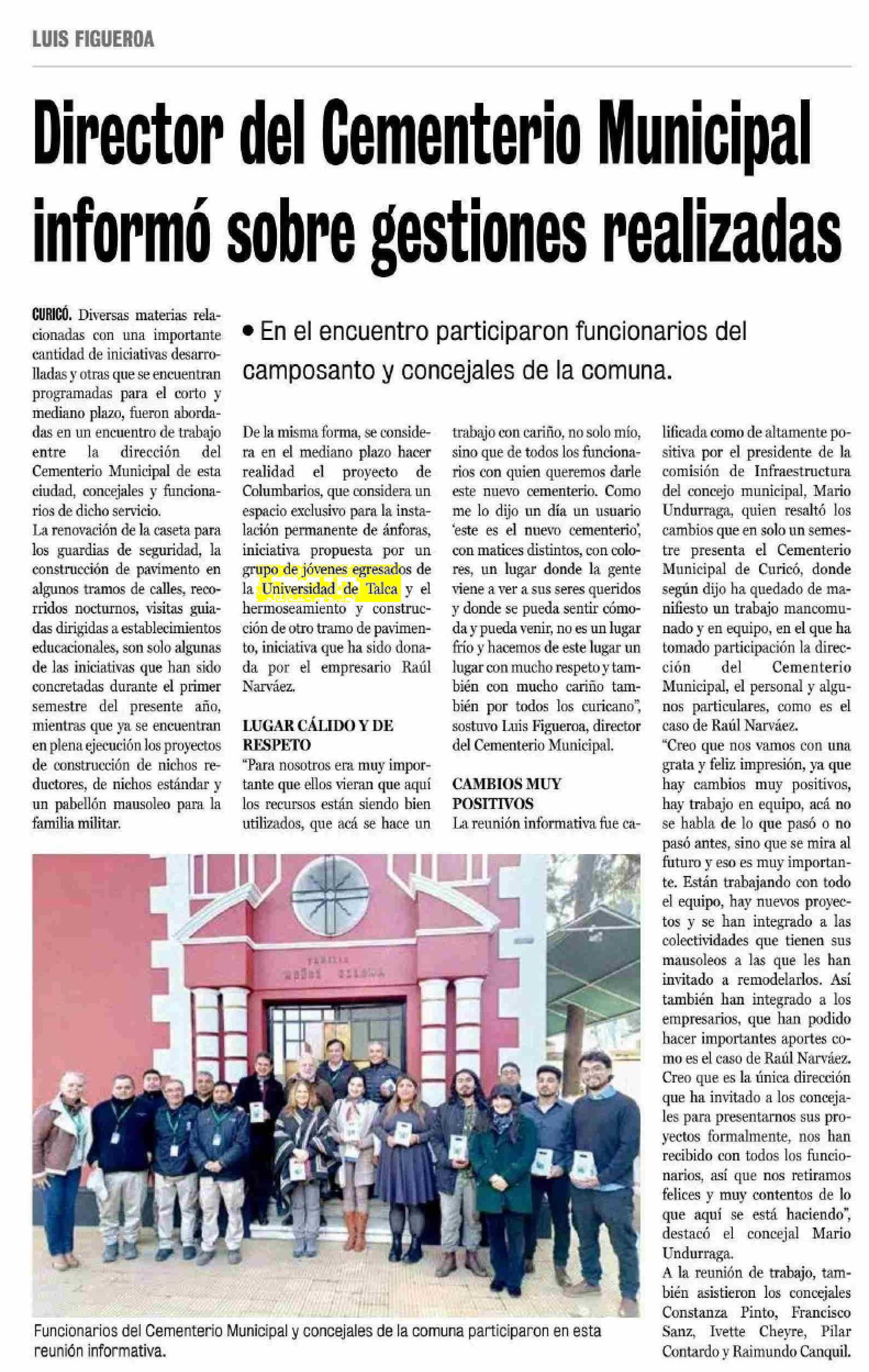 Director del Cementerio Municipal informó sobre gestiones realizadas. Se menciona la Universidad de Talca.
