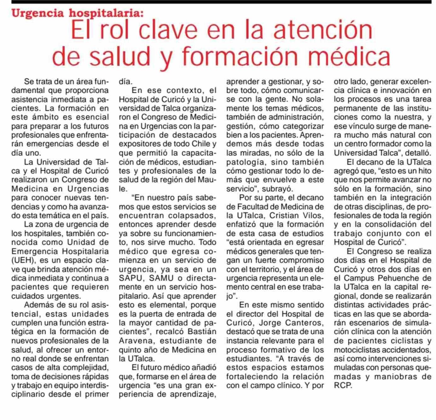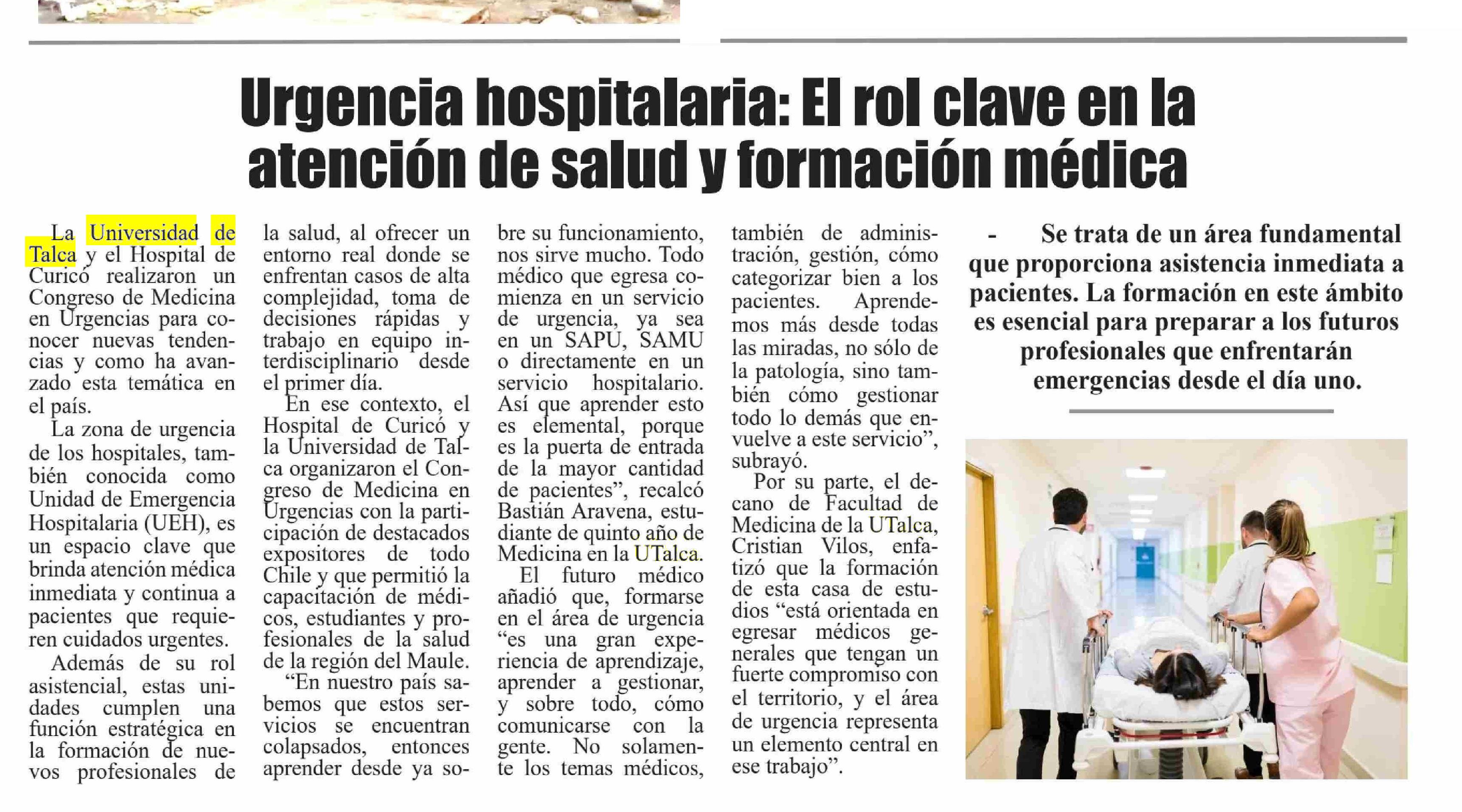 Urgencia hospitalaria: El rol clave en la atención de salud y formación médica. Se refiere Cristian Vilos Ortiz, decano de la Facultad de Medicina de la UTalca.