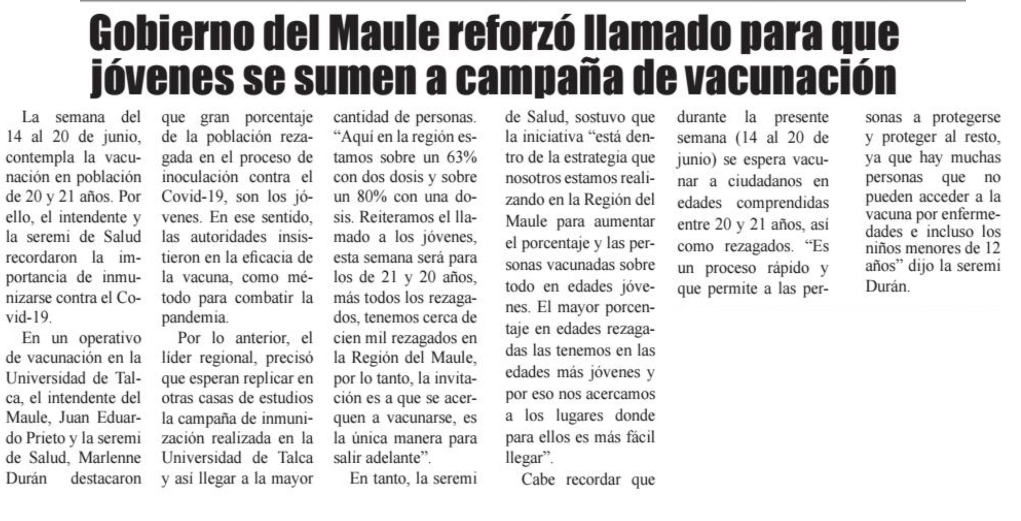 COVID-19: Jornada de vacunación en la Universidad de Talca.