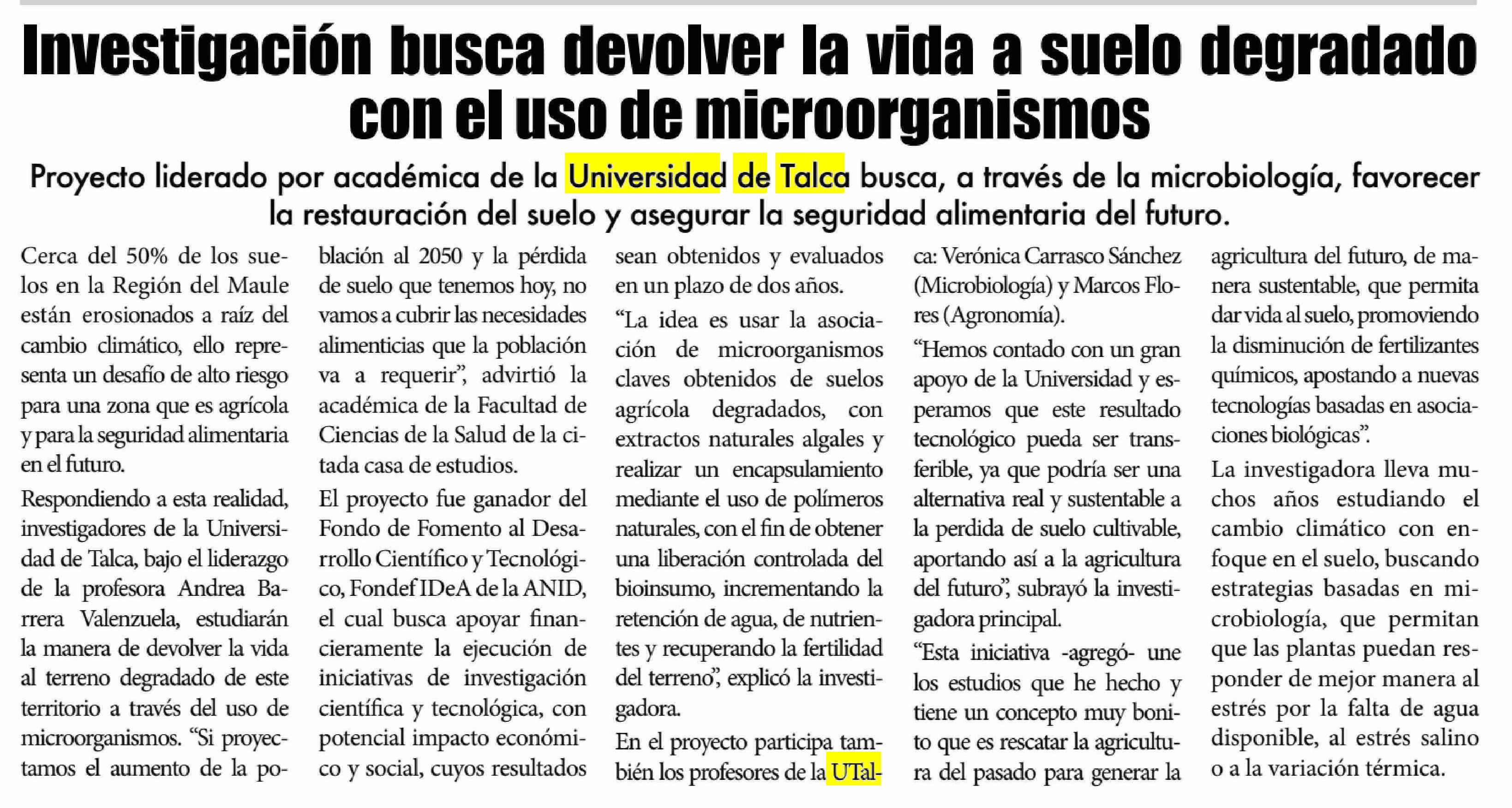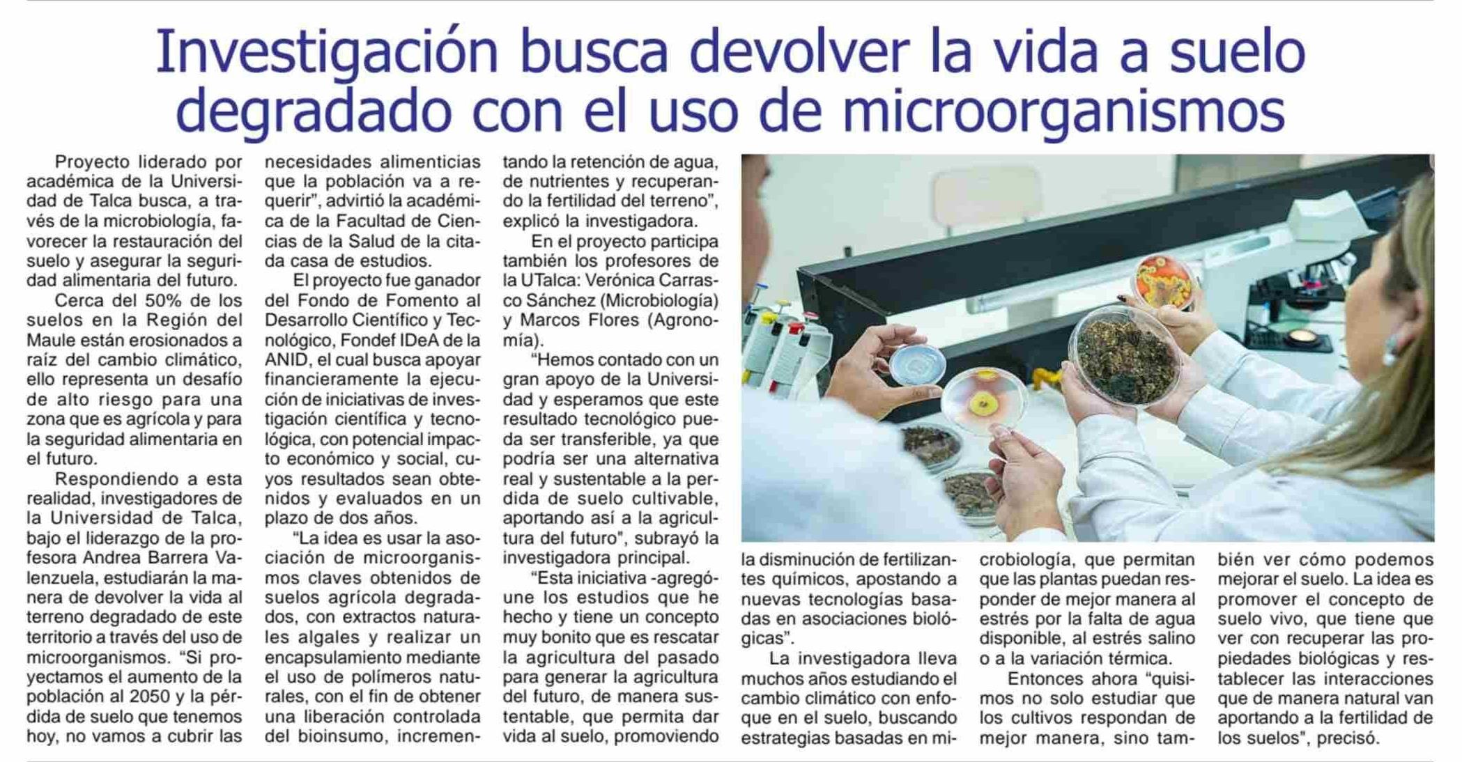 Investigación busca devolver la vida a suelos degradados con el uso de microorganismos. Se refiere Andrea Barrera Valenzuela, académica de la Facultad de Ciencias de la Salud.