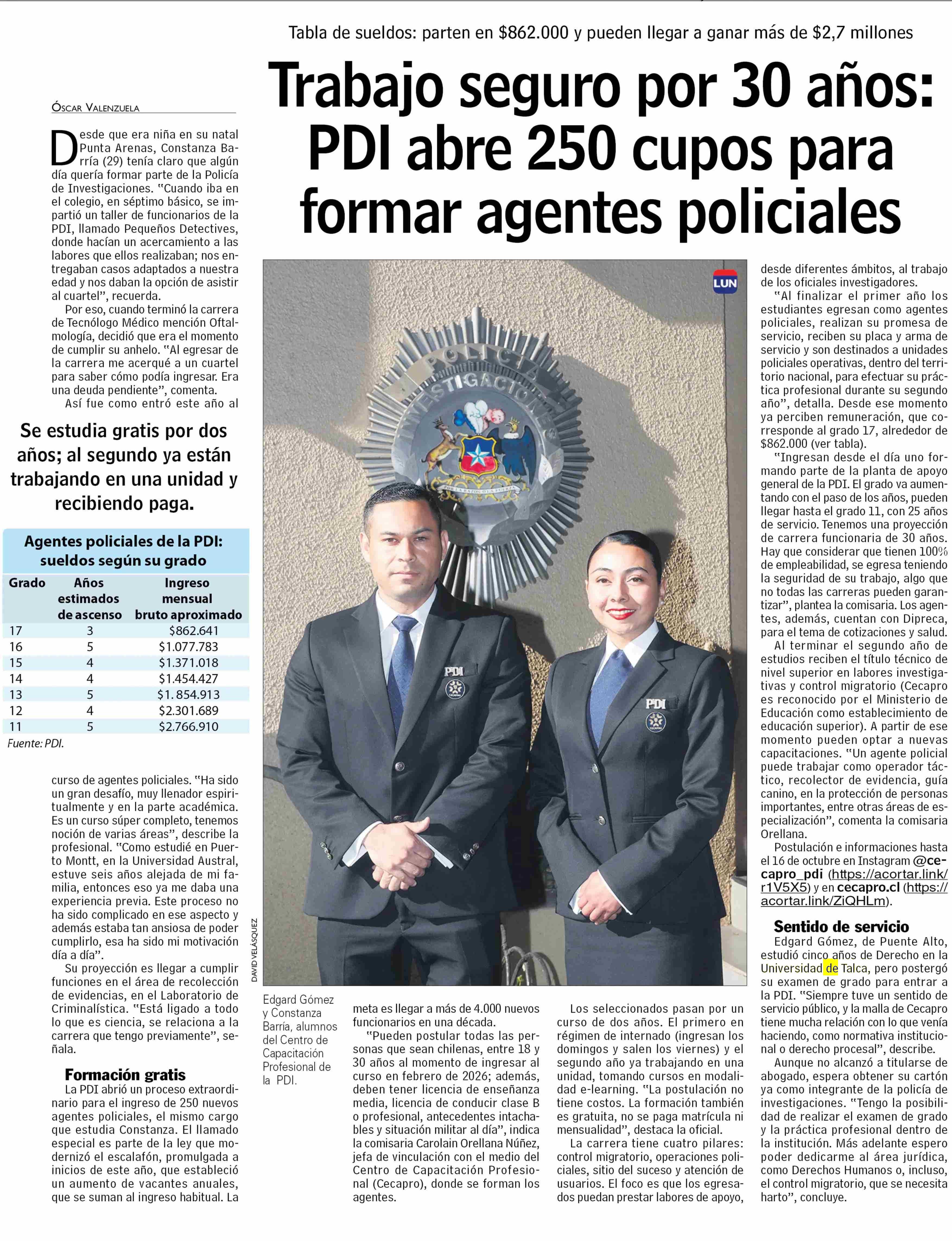 Trabajo seguro por 30 años: PDI abre 250 cupos para formar agentes policiales. Se menciona la Universidad de Talca.