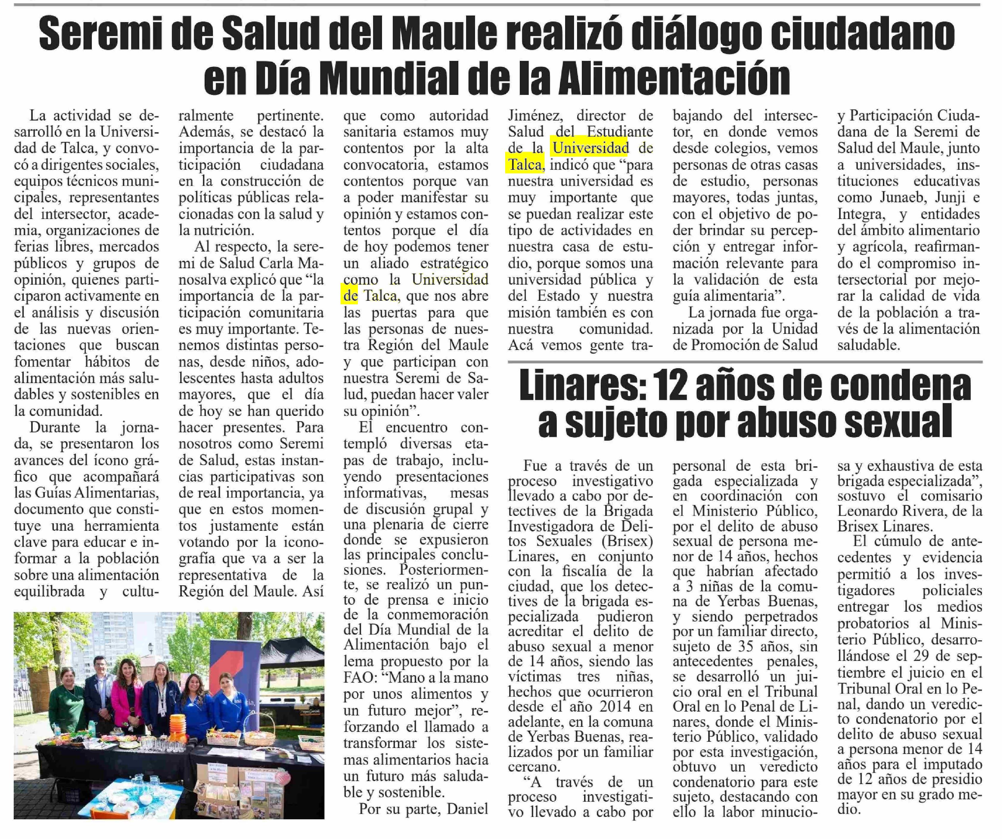 Seremi de Salud del Maule realizó diálogo ciudadano en Día Mundial de la Alimentación. Se refiere Da niel Jiménez, director de Salud del Estudiante