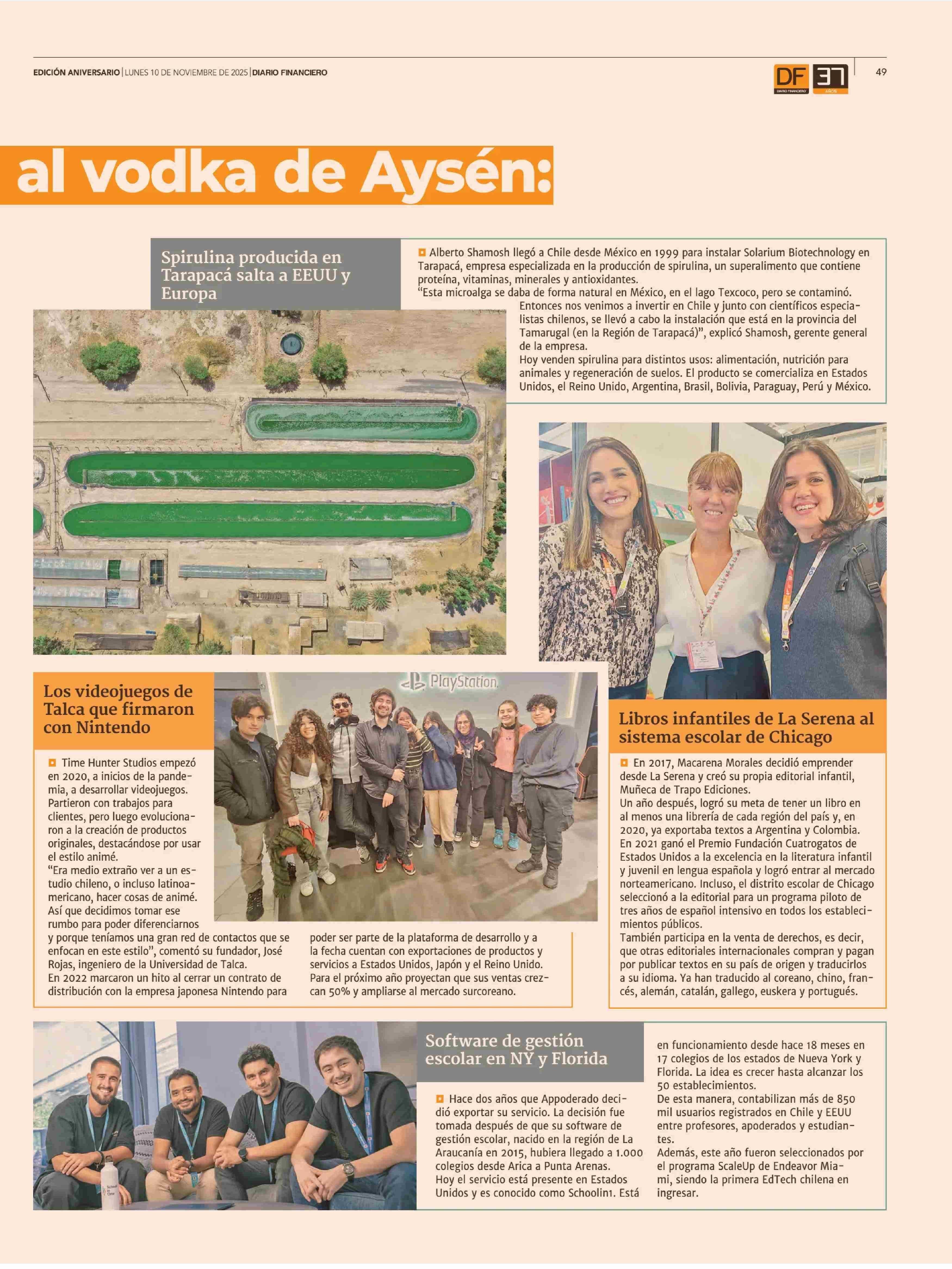 Desde la spirulina de Tarapacá al vodka de Aysén: las otras exportaciones chilenas. Se menciona la Universidad de Talca.
