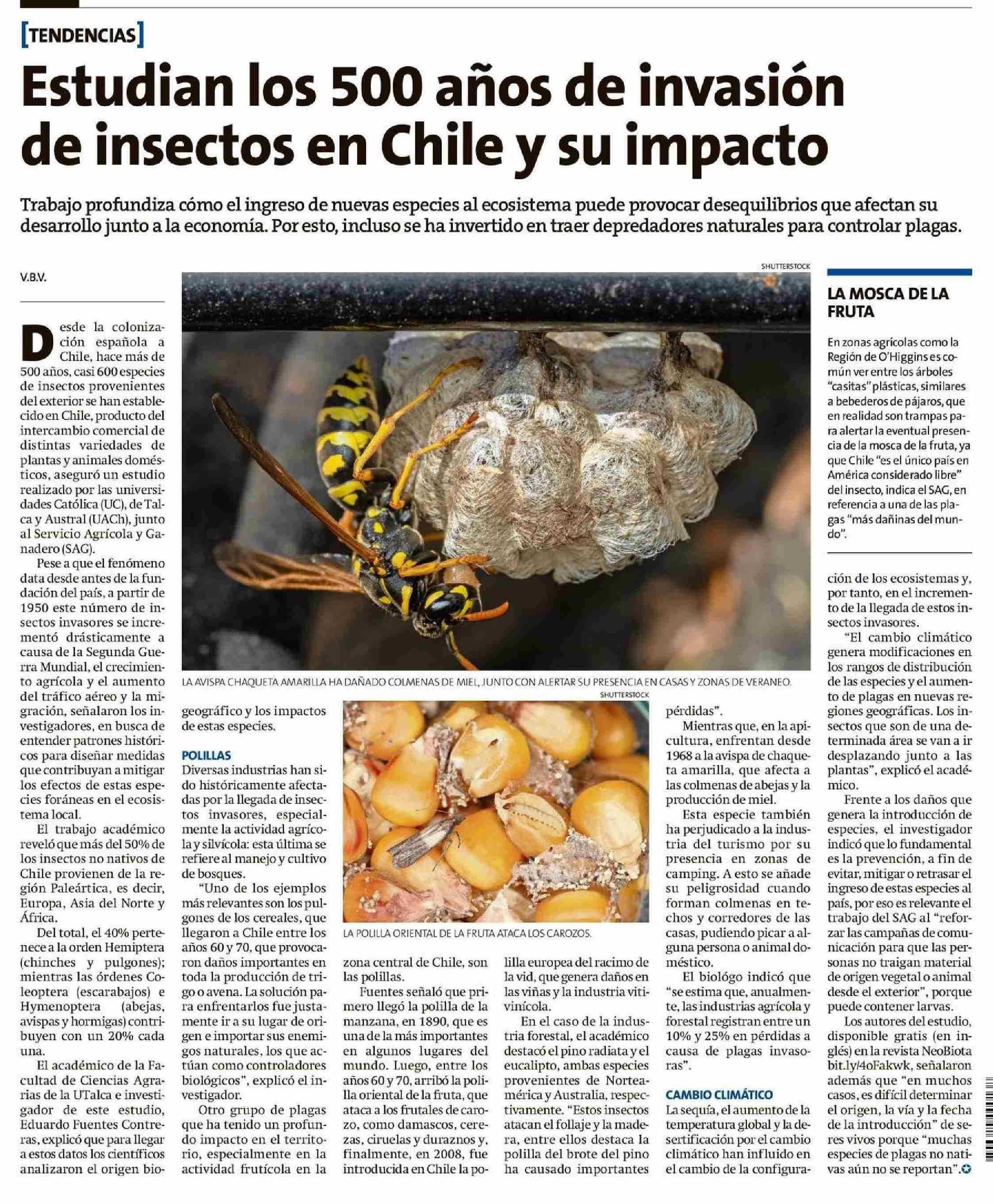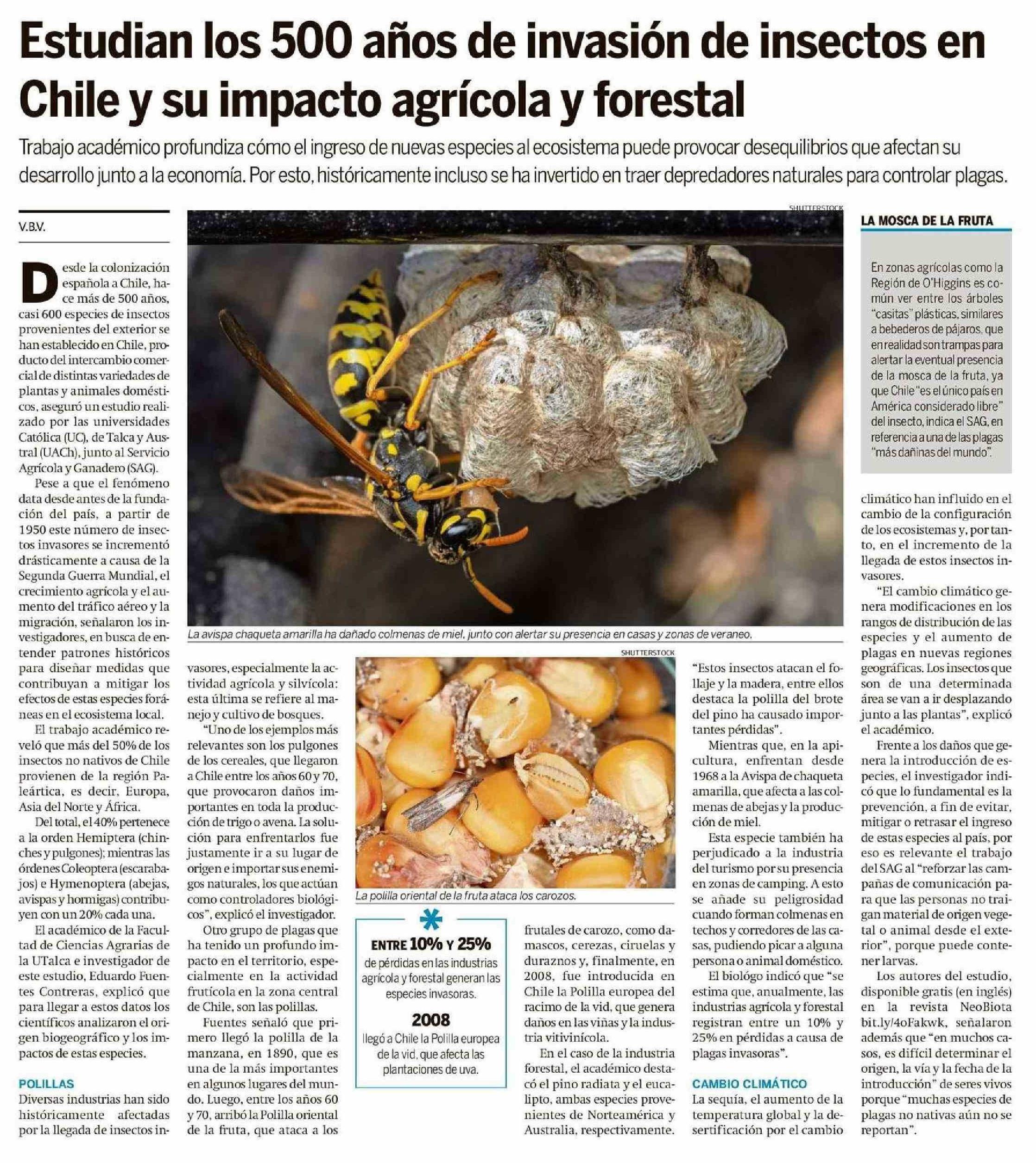 Estudian los 500 años de invasión de insectos en Chile y su impacto agrícola y forestal. Se refiere Eduardo Fuentes Contreras, académico de la Facultad de Ciencias Agrarias.