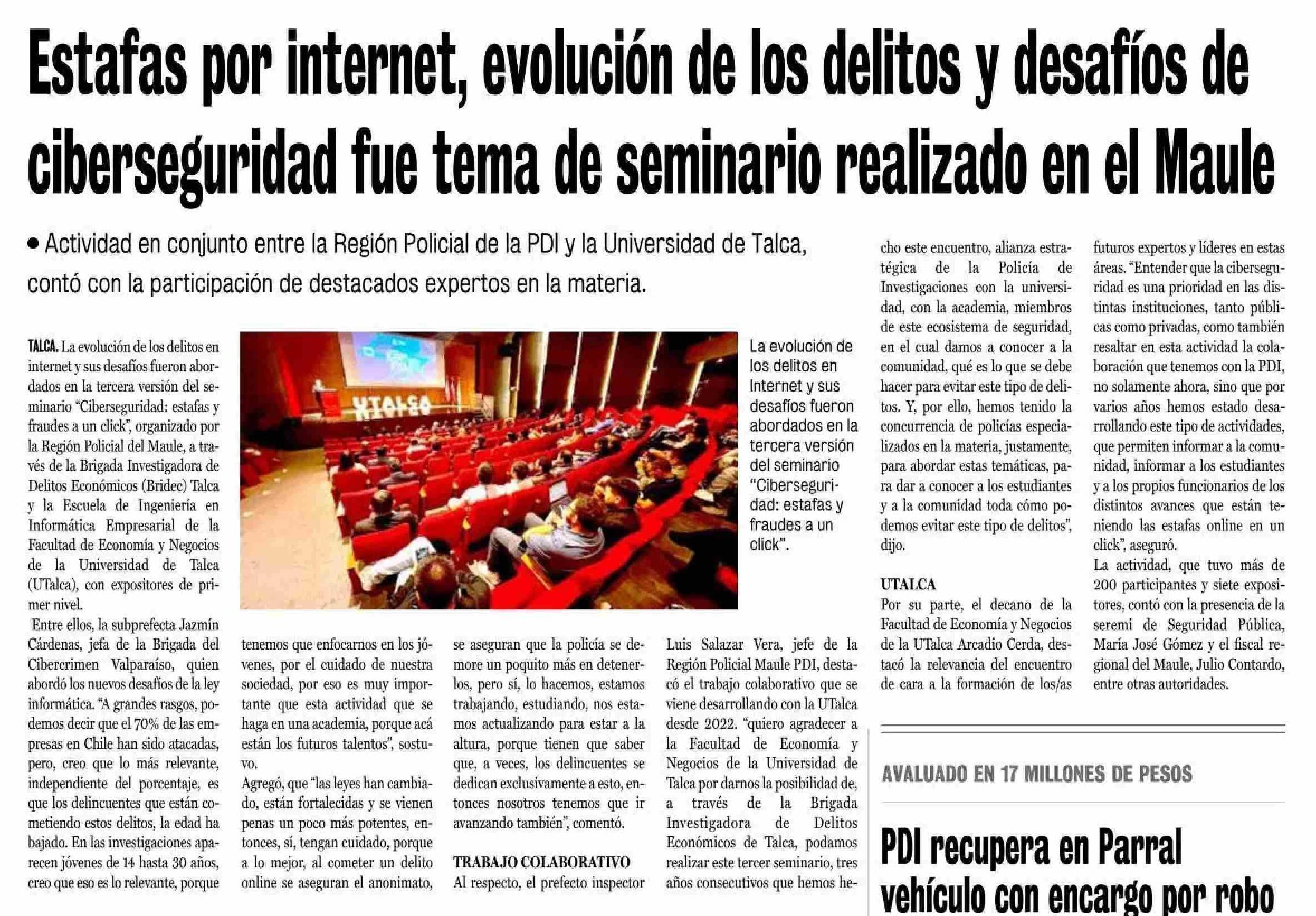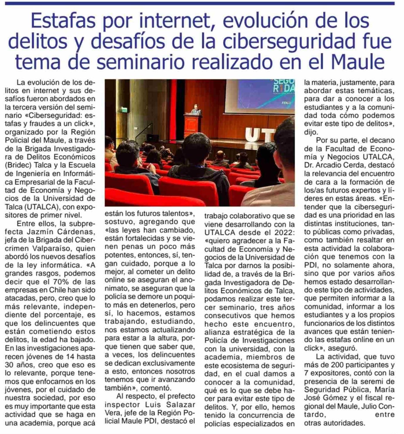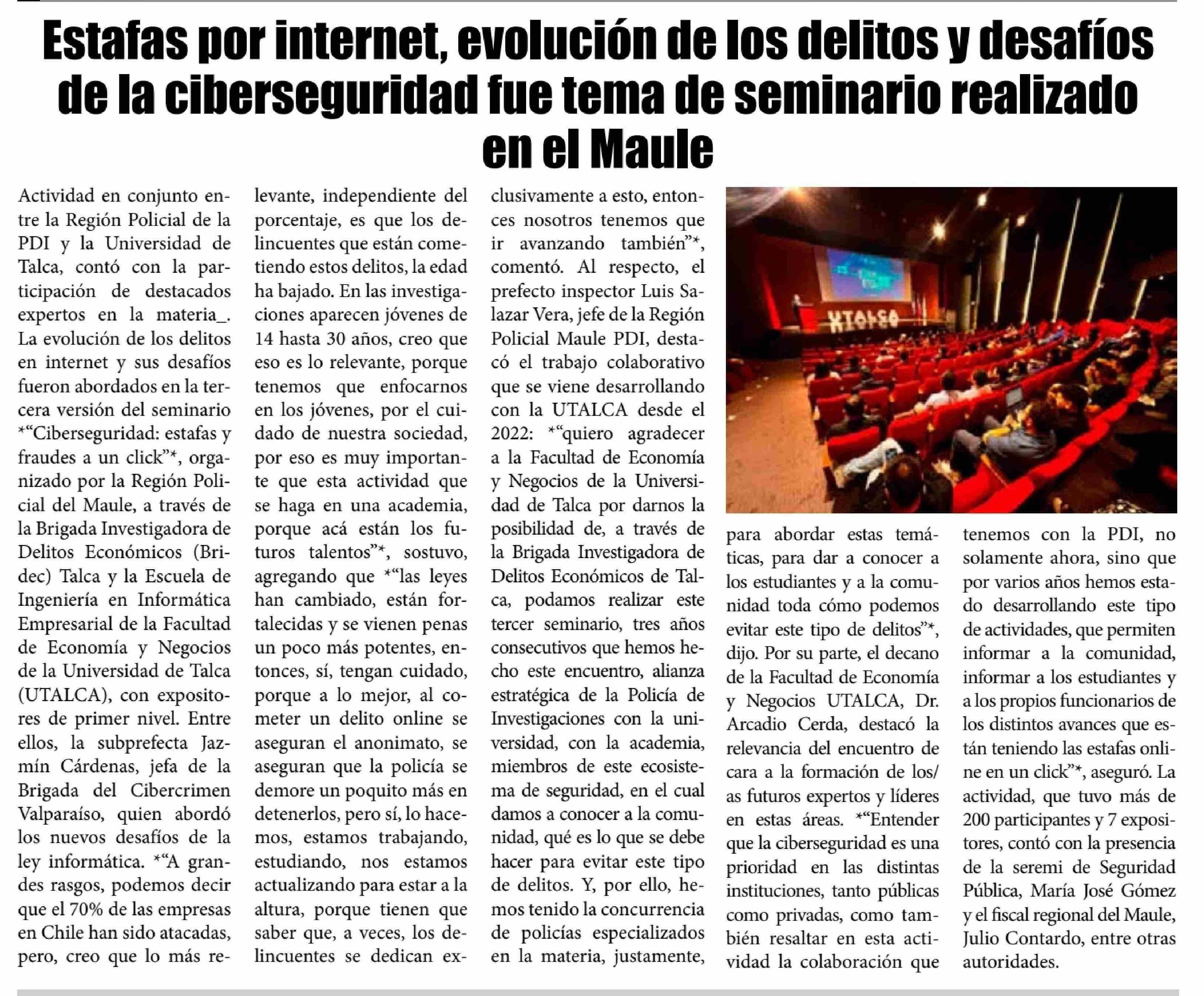 Desafíos de la ciberseguridad fue tema de seminario realizado en Talca. Se refiere arcadio Cerda, decano de la Facultad de economía y Negocios.