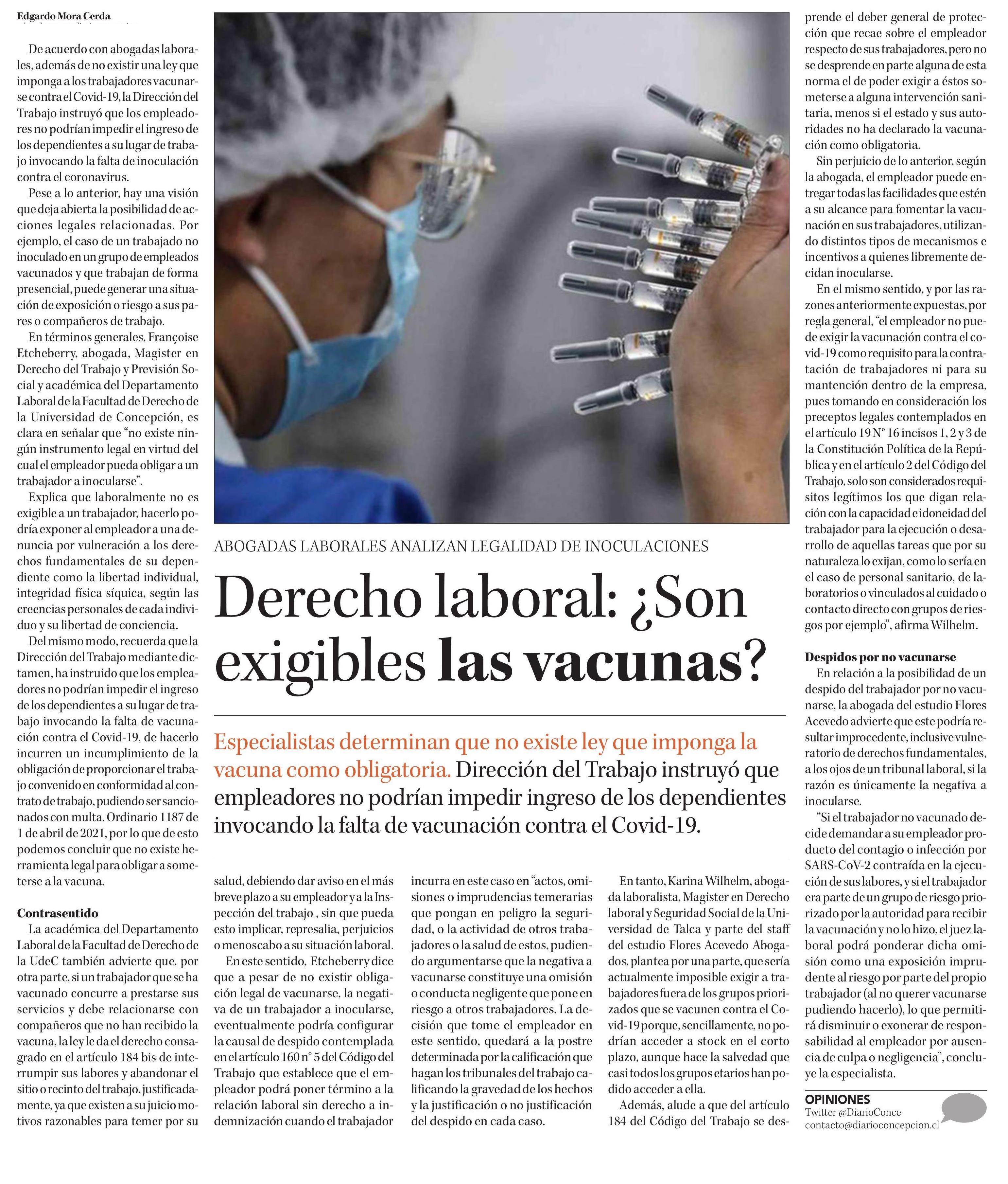 Derecho laboral: ¿Son exigibles las vacunas? Se menciona a la UTalca.