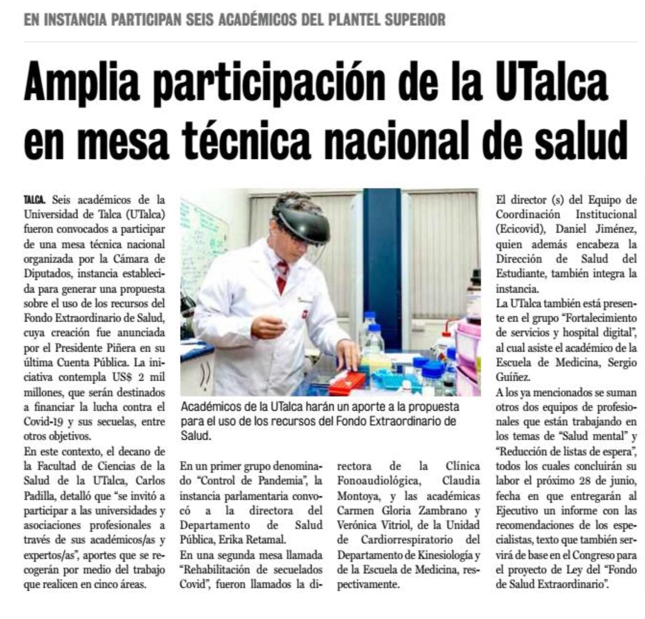 Portada: Amplia participación de la UTalca en mesa técnica nacional de salud.