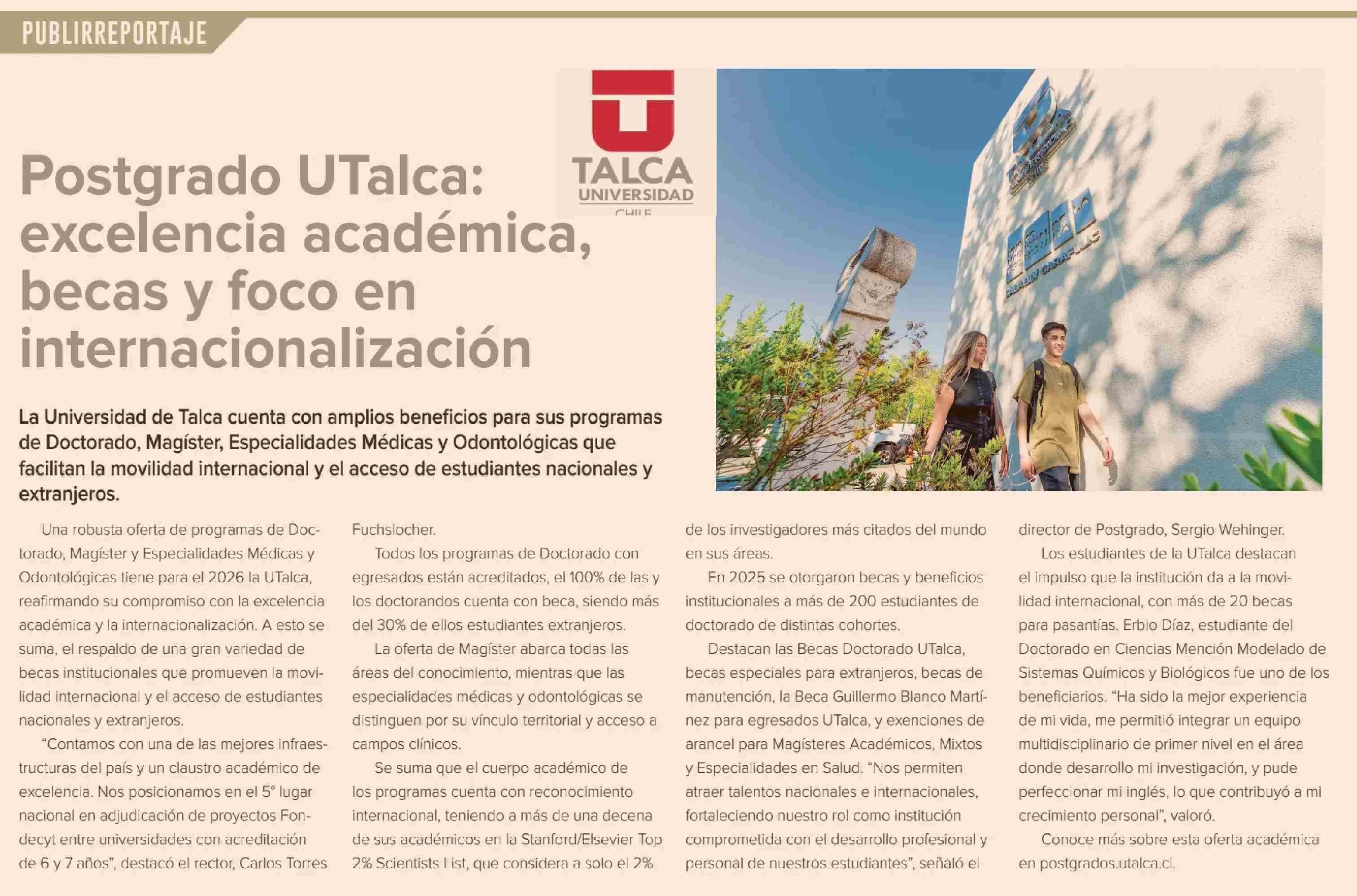 Rankings internacionales revelan cuáles son las universidades chilenas más destacadas. Se menciona la Universidad de Talca.